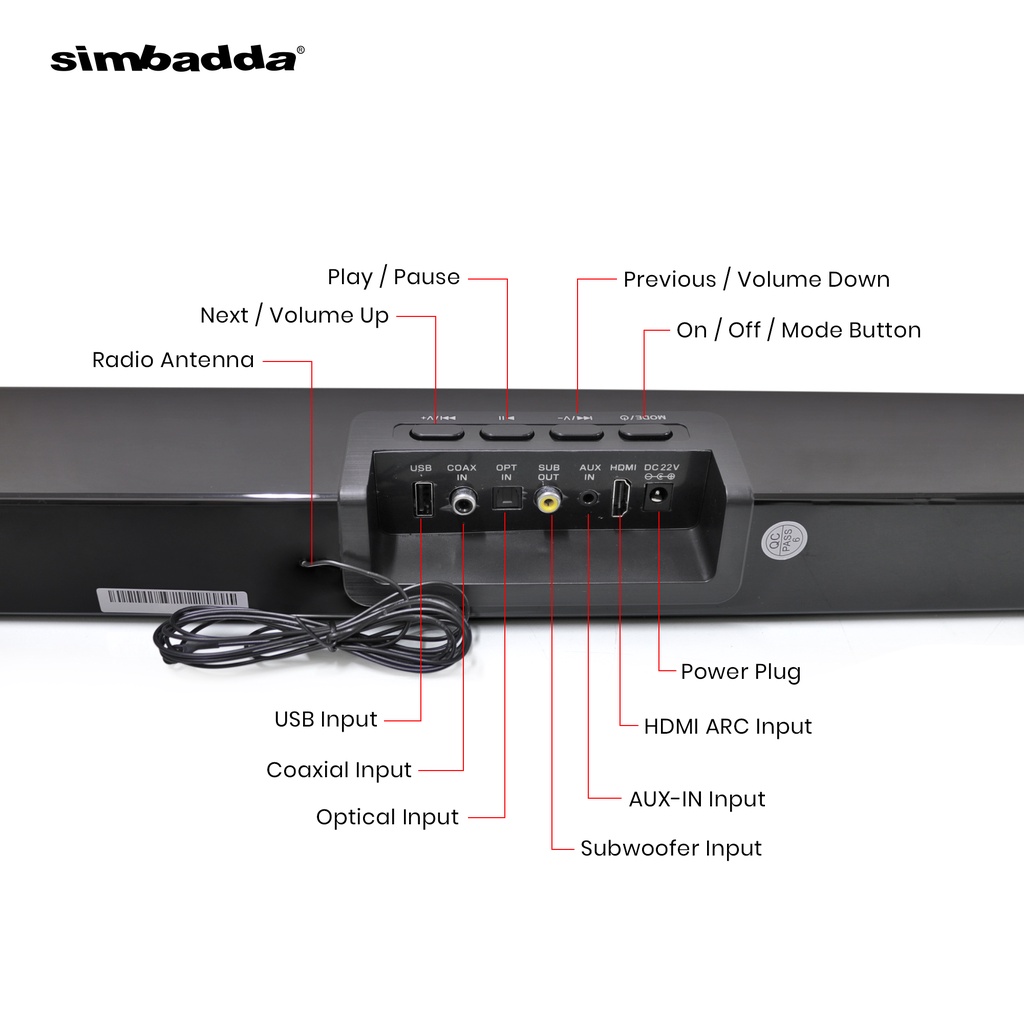 Simbadda CST 906N+ Soundbar TV Wireless Bluetooth Home Theater Super Bass Karaoke