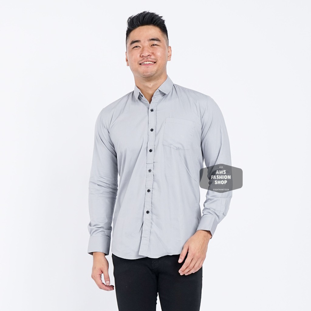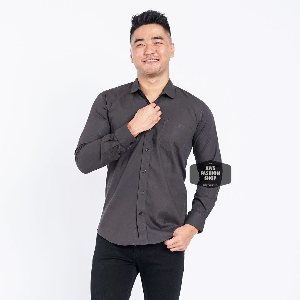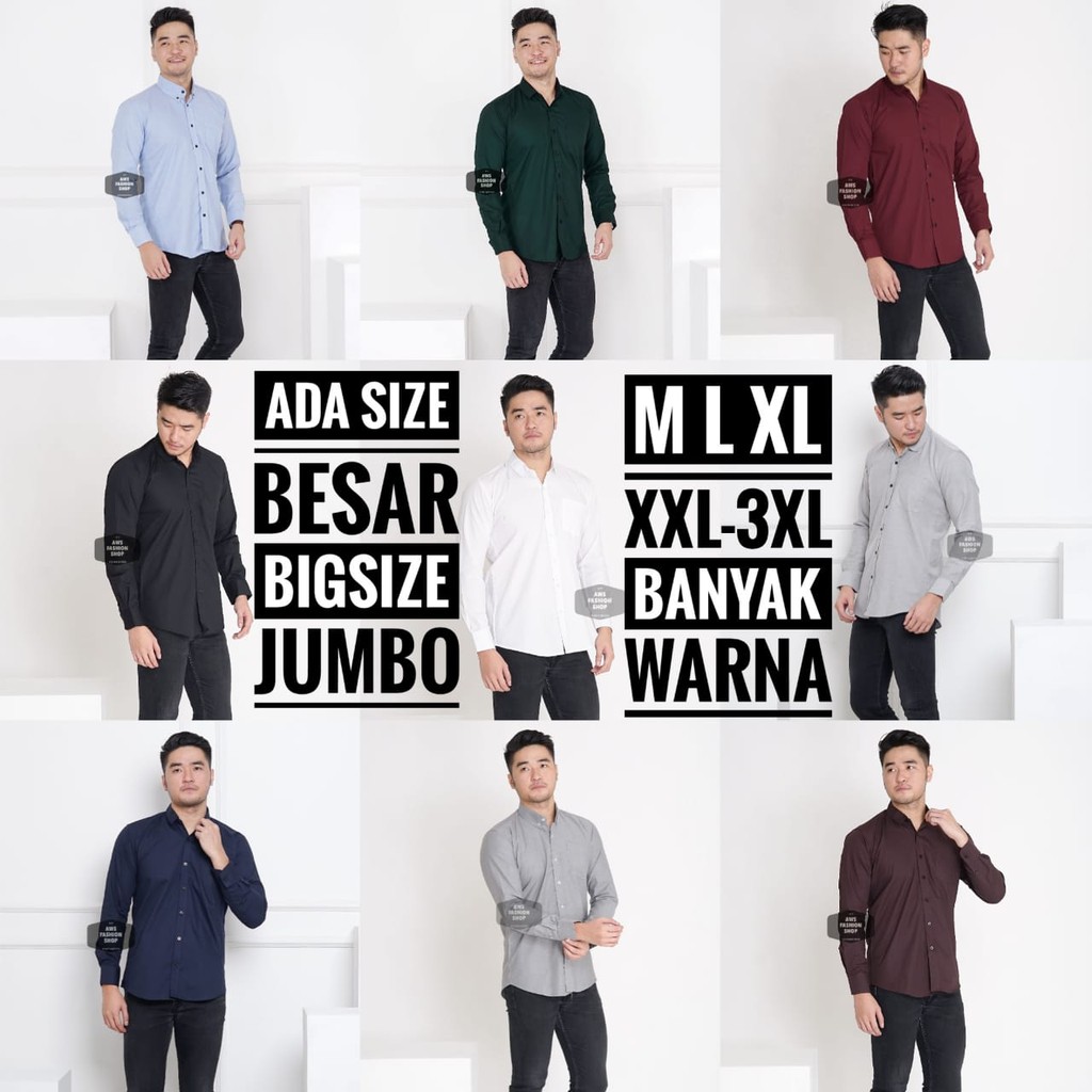 KEMEJA PANJANG PRIA COWOK POLOS JUMBO BIG SIZE XXL XXXL / 3XL HITAM, BIRU NAVY, PUTIH, ABU, MAROON