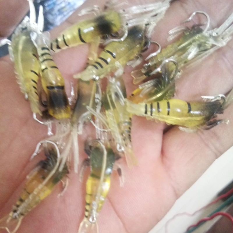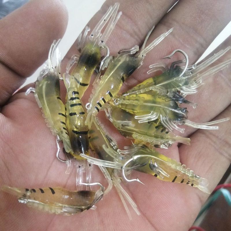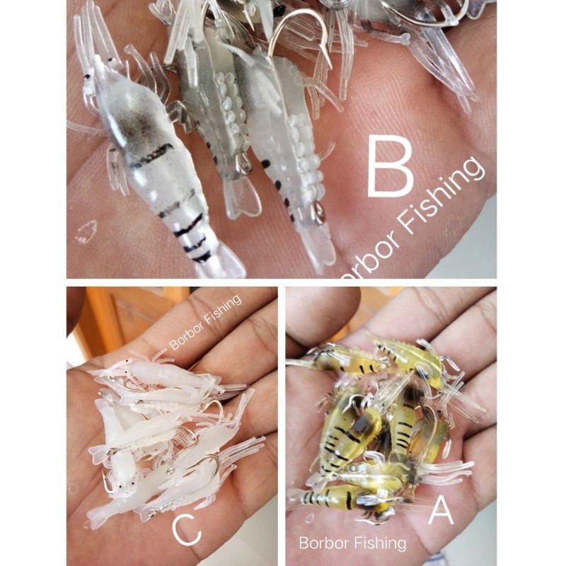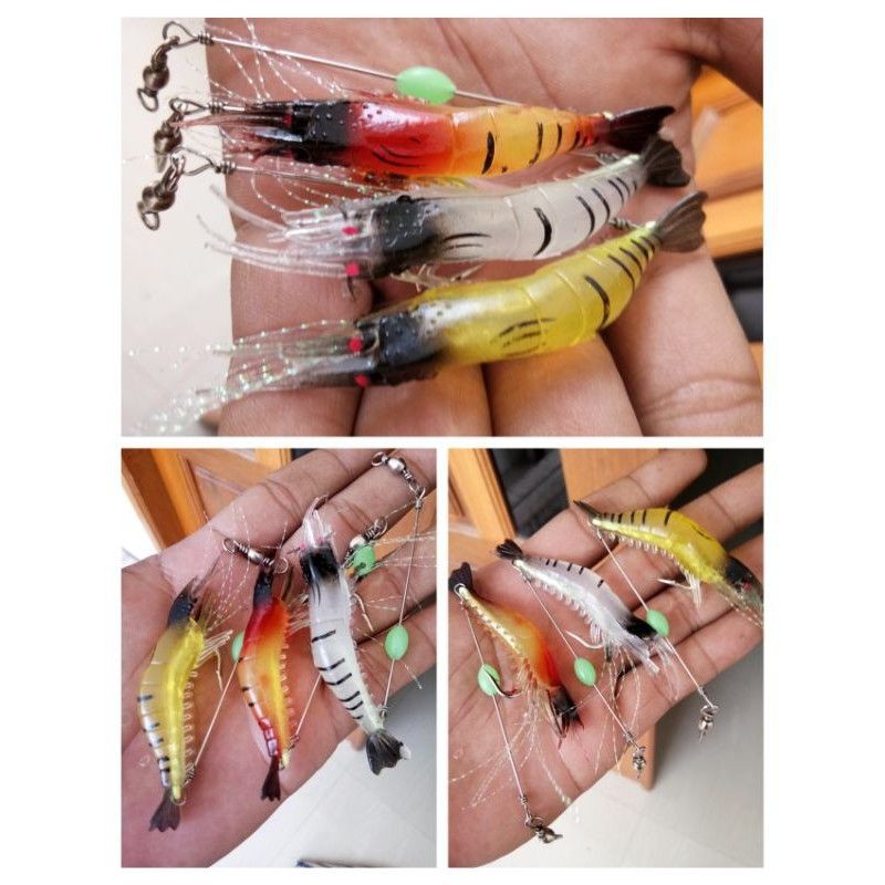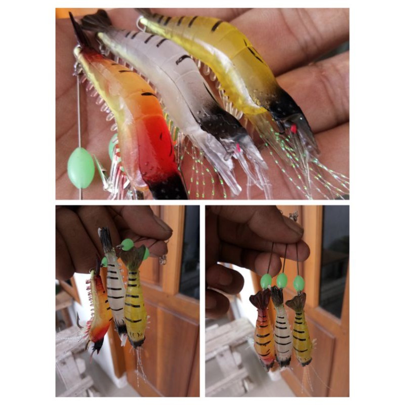 PAKET 3 PCS /3 CM DAN 3 PCS /7 CM/ UMPAN UDANG -PANCING KAKAP, TUNA DLL MUARA, LAUT, DANAU