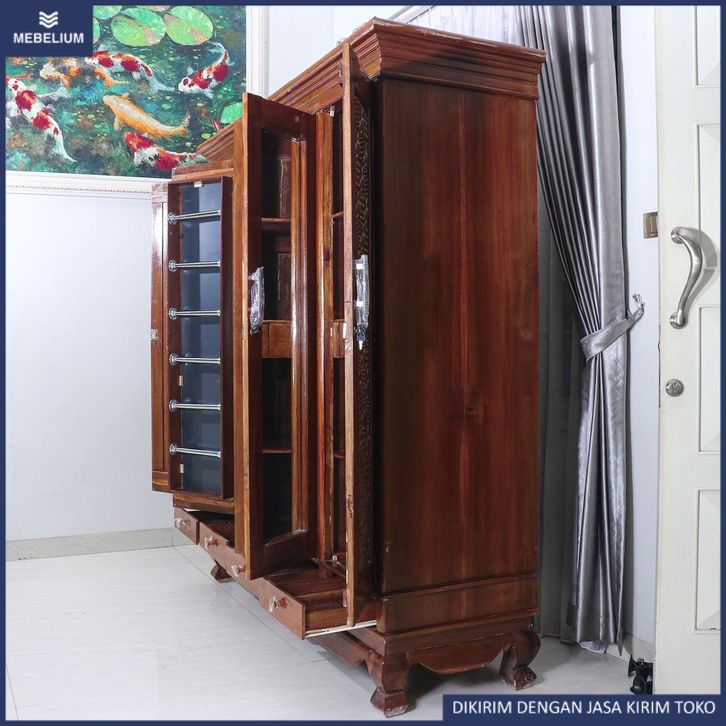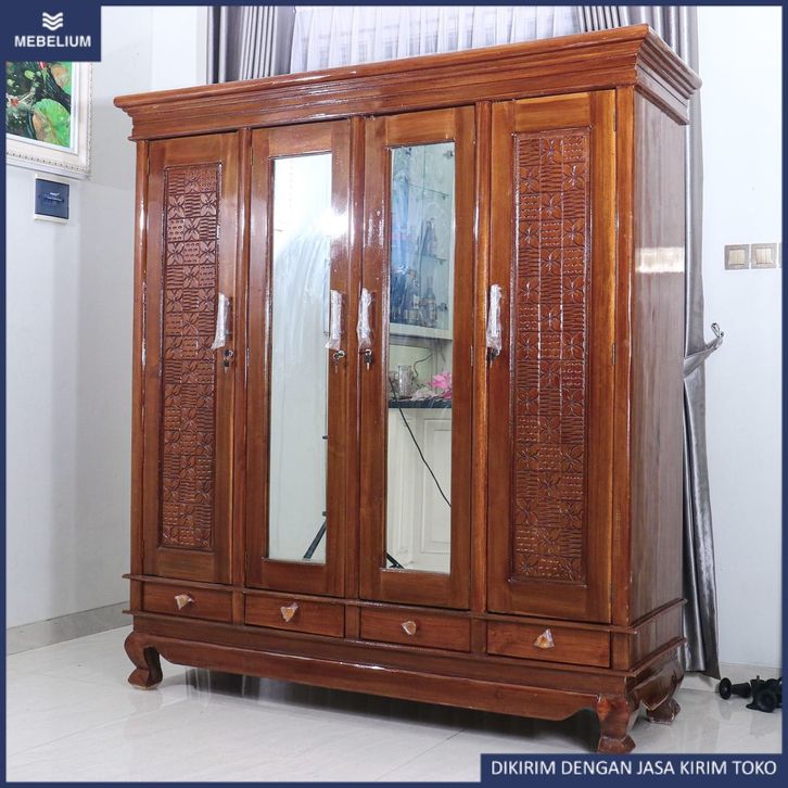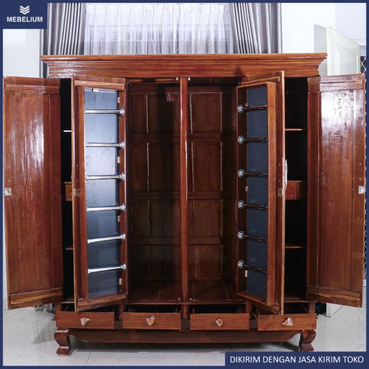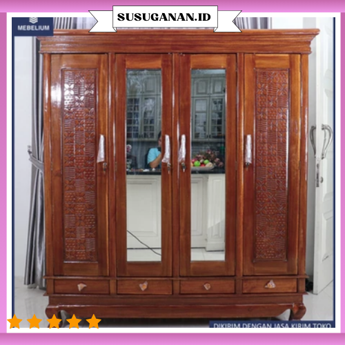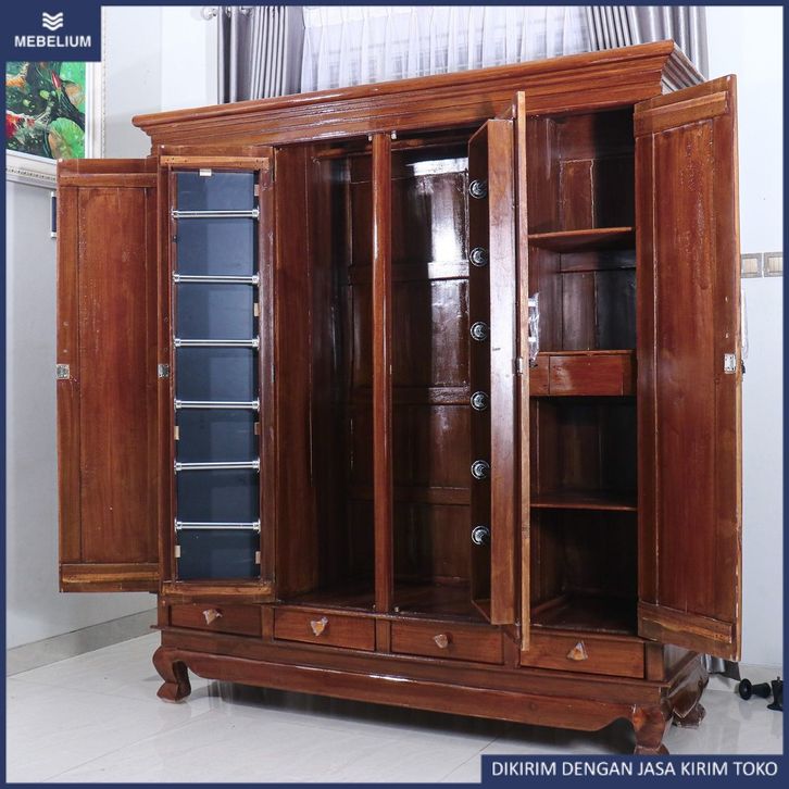 [Star] [Jabodetabek] Lemari Pakaian / Baju Rak Hijab 4 Pintu Laci Bahan Full Kayu Jati Anti Rayap Lemari kayu jati asli