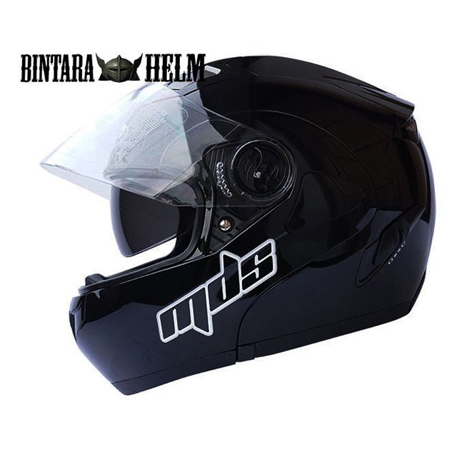 HELM MDS PRO RIDER SOLID BLACK METALIC ORIGINAL HELM MDS MODULAR DOUBLE VISOR HELMET FULL FACE