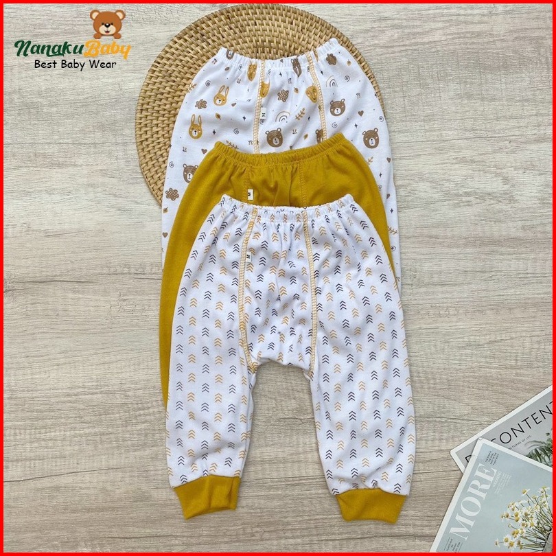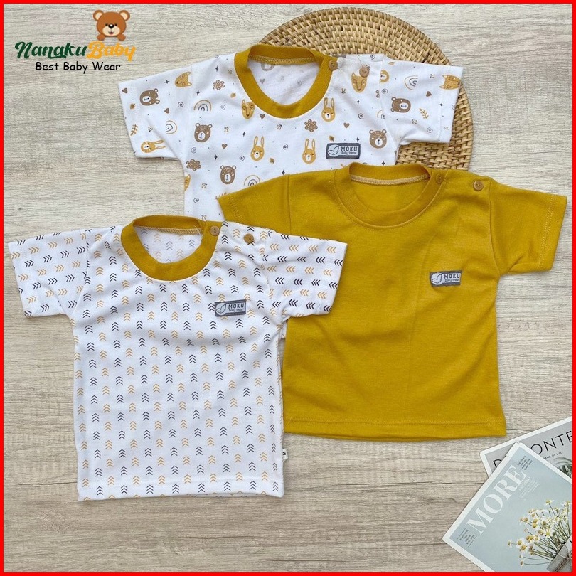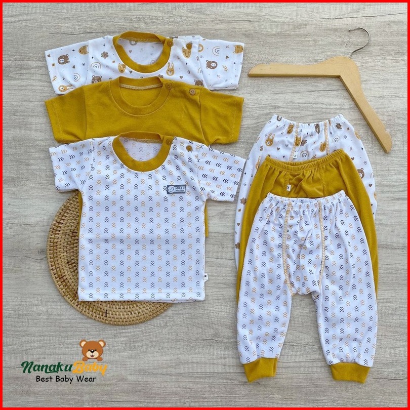 Nanaku Baby - Isi 3 Setelan Bayi Lengan Pendek Celana Diapers Panjang Seri Mustard Usia 0-18 Bulan