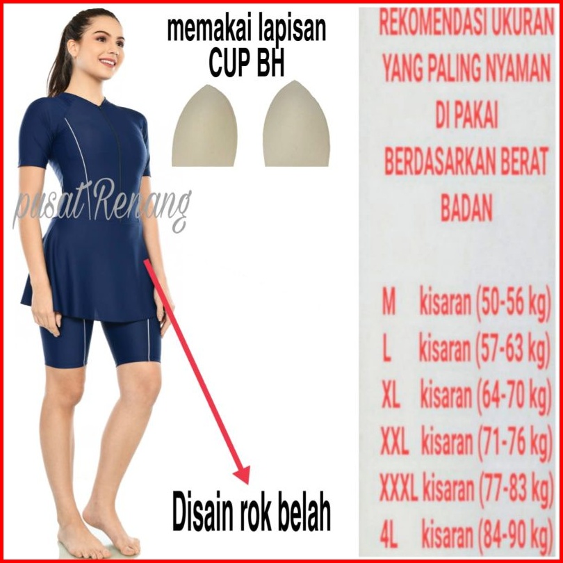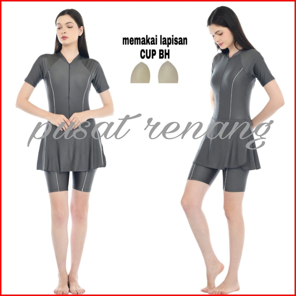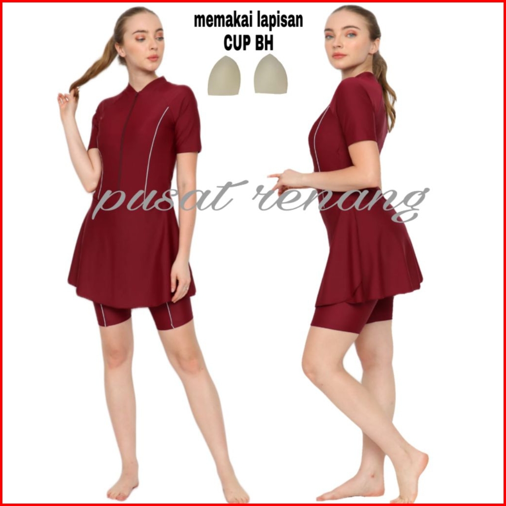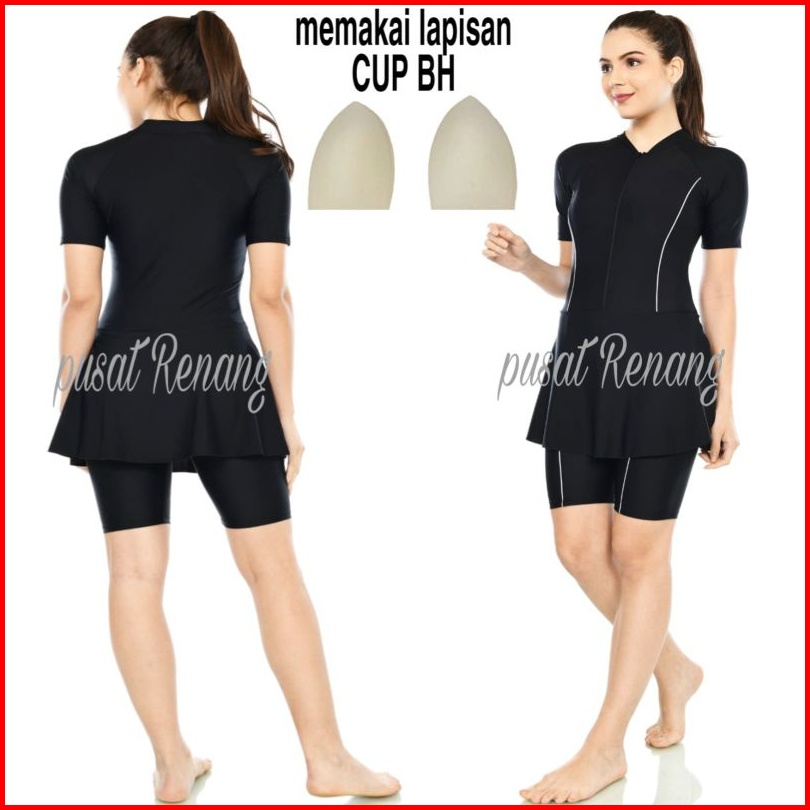 Baju Renang Wanita Lapisan Cup Bh Baju Renang Baju Renang Polos Dv-rok Polos Tangan Pendek Dewasa