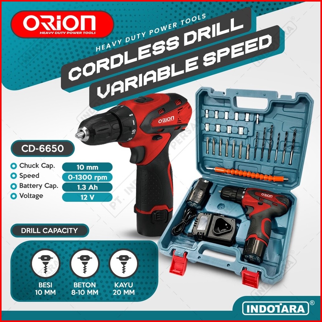 Mesin Bor Baterai Tangan Cordless Drill Battery Orion Cd-6650 2 Battery
