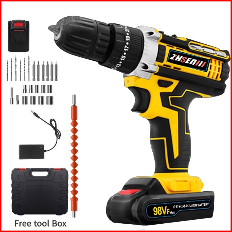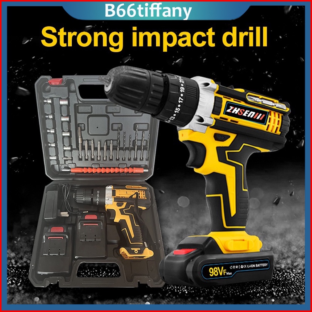 Mesin Bor Cordless Bor Baterai Bor Listrik Beton Besi Kayu Full 98vf Set Pilihan Bor Tanpa Kabel Bor Mesin Elektrik Dril