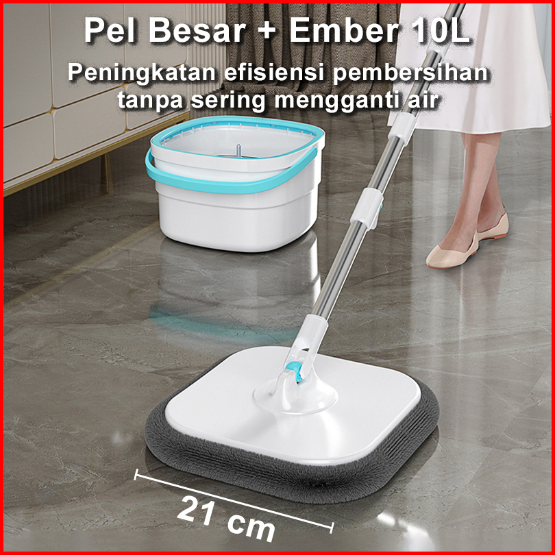 Alat Pel Lantai Putar Kain Pel Microfiber Pelan Lantai Besar 21cm Lap Pel Peras Otomatis Alat Pel Lantai Praktis Ultra M
