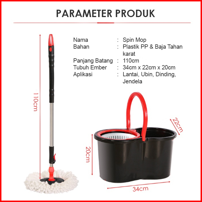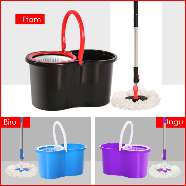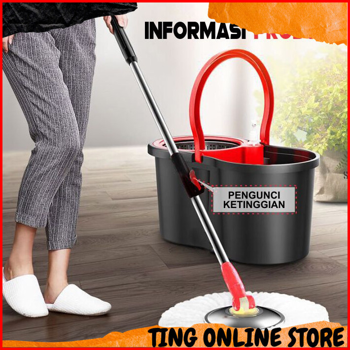 Spin Mop Alat Pel Lantai Microfiber Dapat Berputar 360 Derajat Otomatis Dengan Bak Wadah Air Pel Dilengkapi Pemerasan