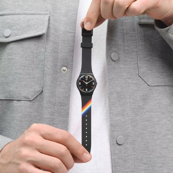 Original 100%!! Jam Tangan Unisex SWATCH SO28B705 BLACK CAROUSEL SQUARES garansi Resmi 2 Tahun