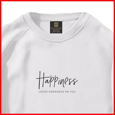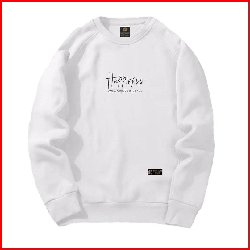 Aleejoe65 Sweater Crewneck Pria Polos Distro Happiness Crewneck Putih Pria Oversize M L Xl Xxl Crew Neck Pria Murah