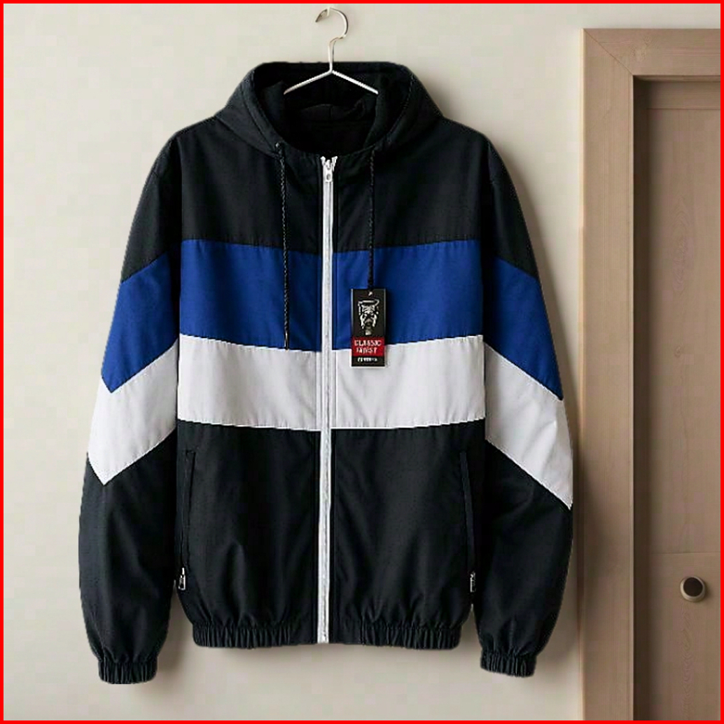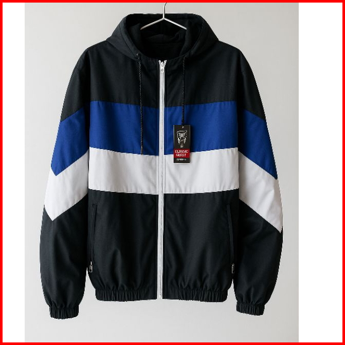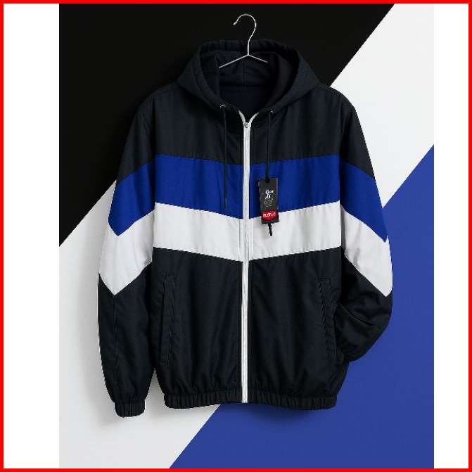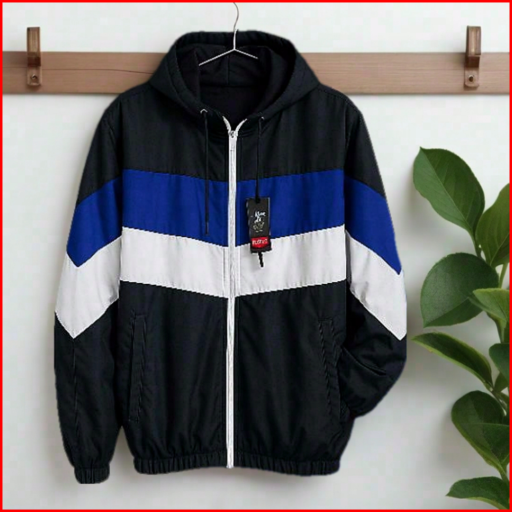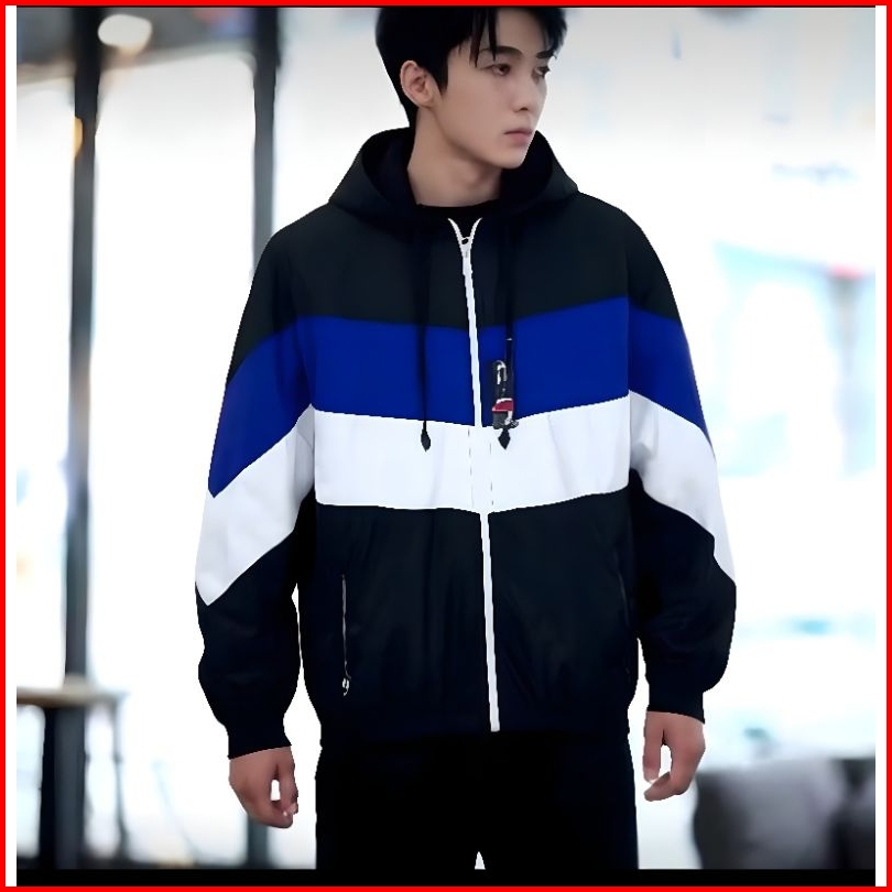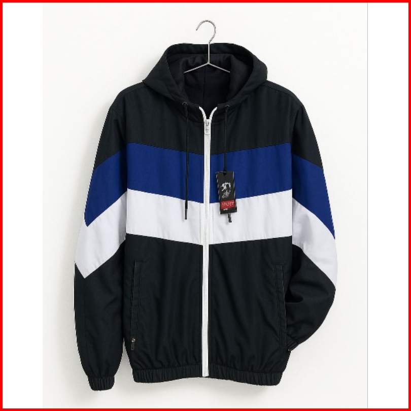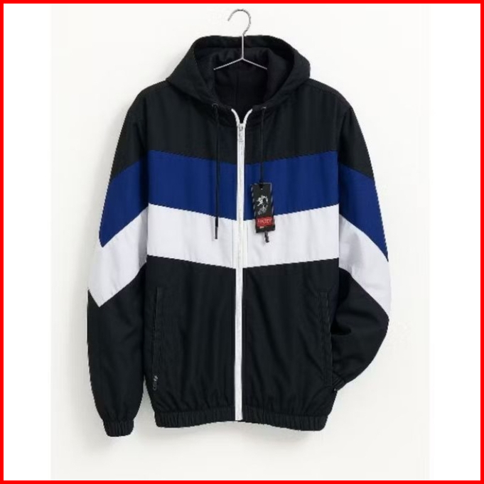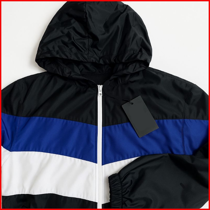 Jaket Parasut Windbreaker Tractop Pria Wanita Kombinasi Warna Hitam Putih Biru Anti Angin