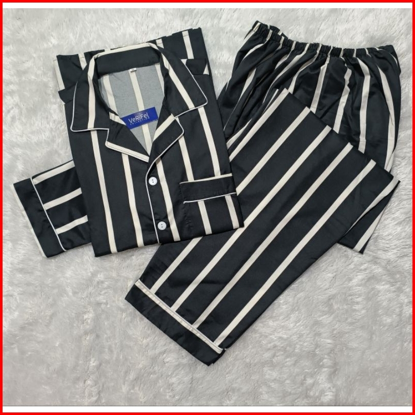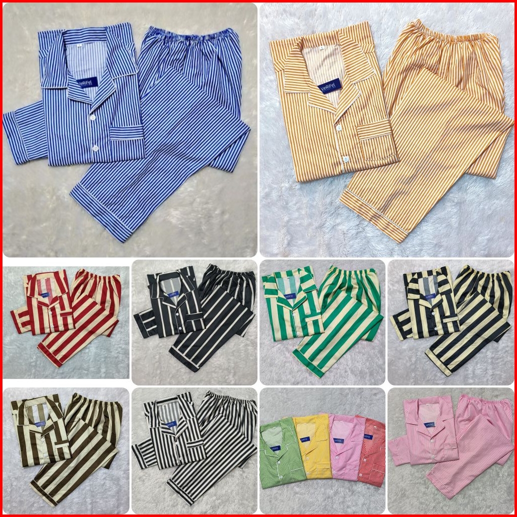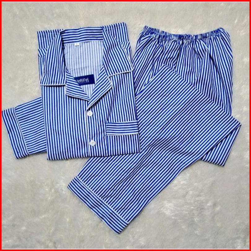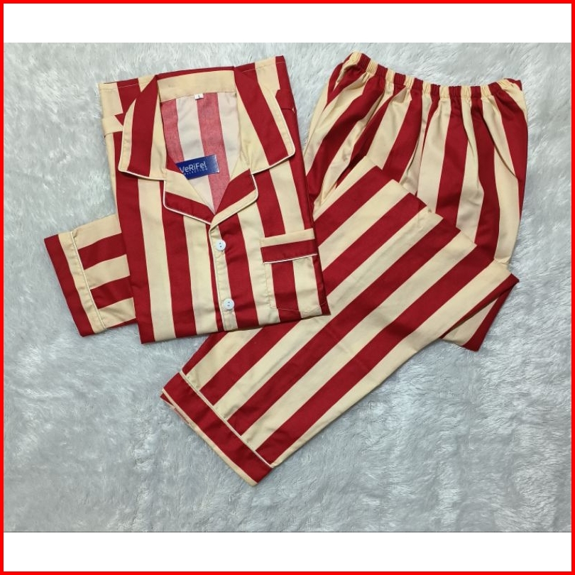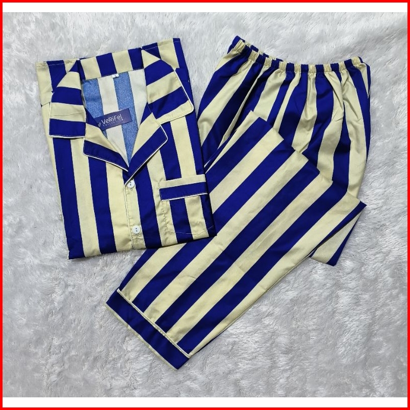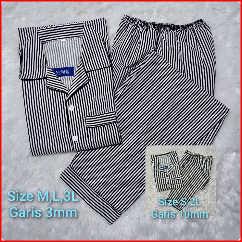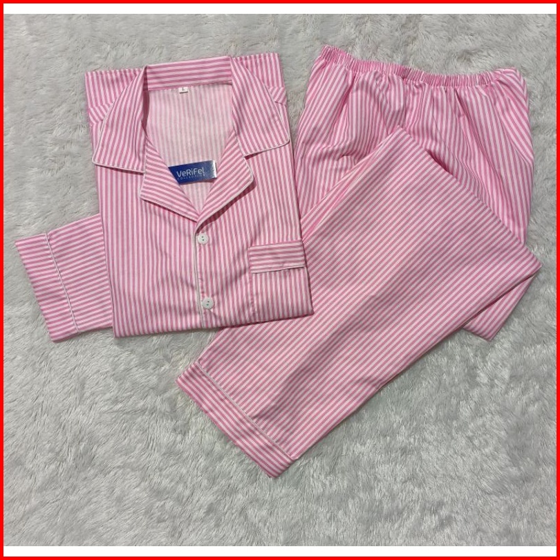 Verifel Piyama Salur Baju Tidur Pria Wanita Remaja Dewasa Jumbo Katun Micro Halus Setelan Cp Pp Promo Murah Harga Grosir