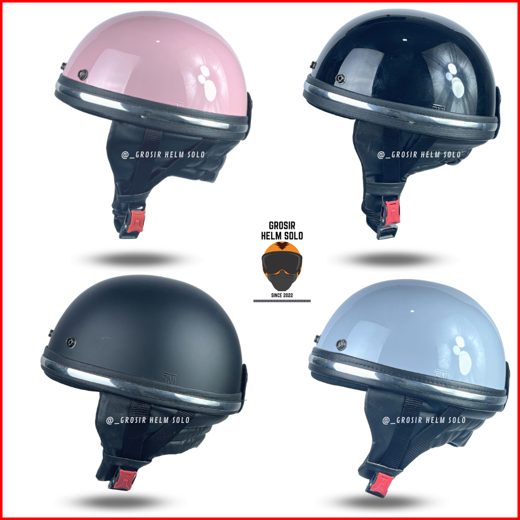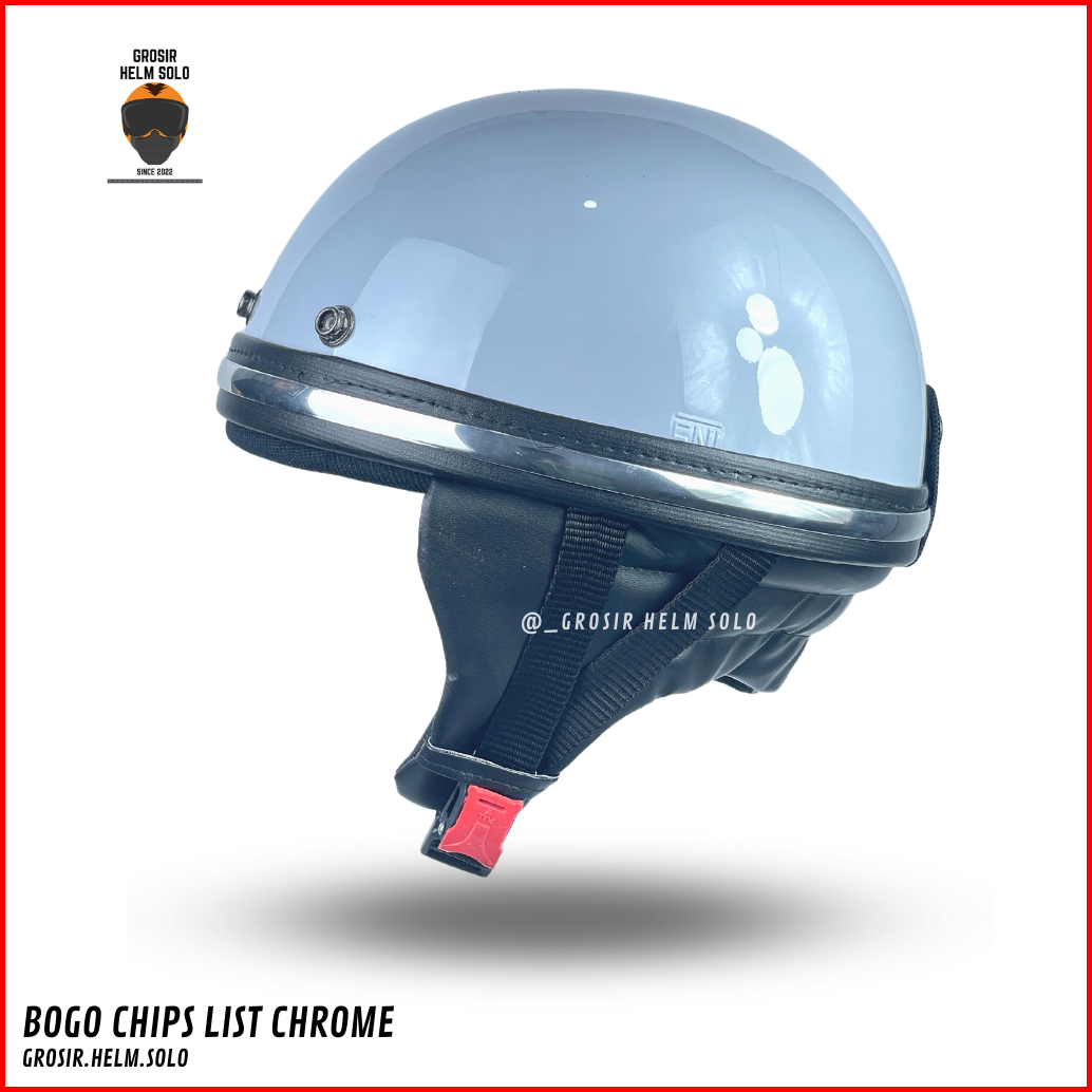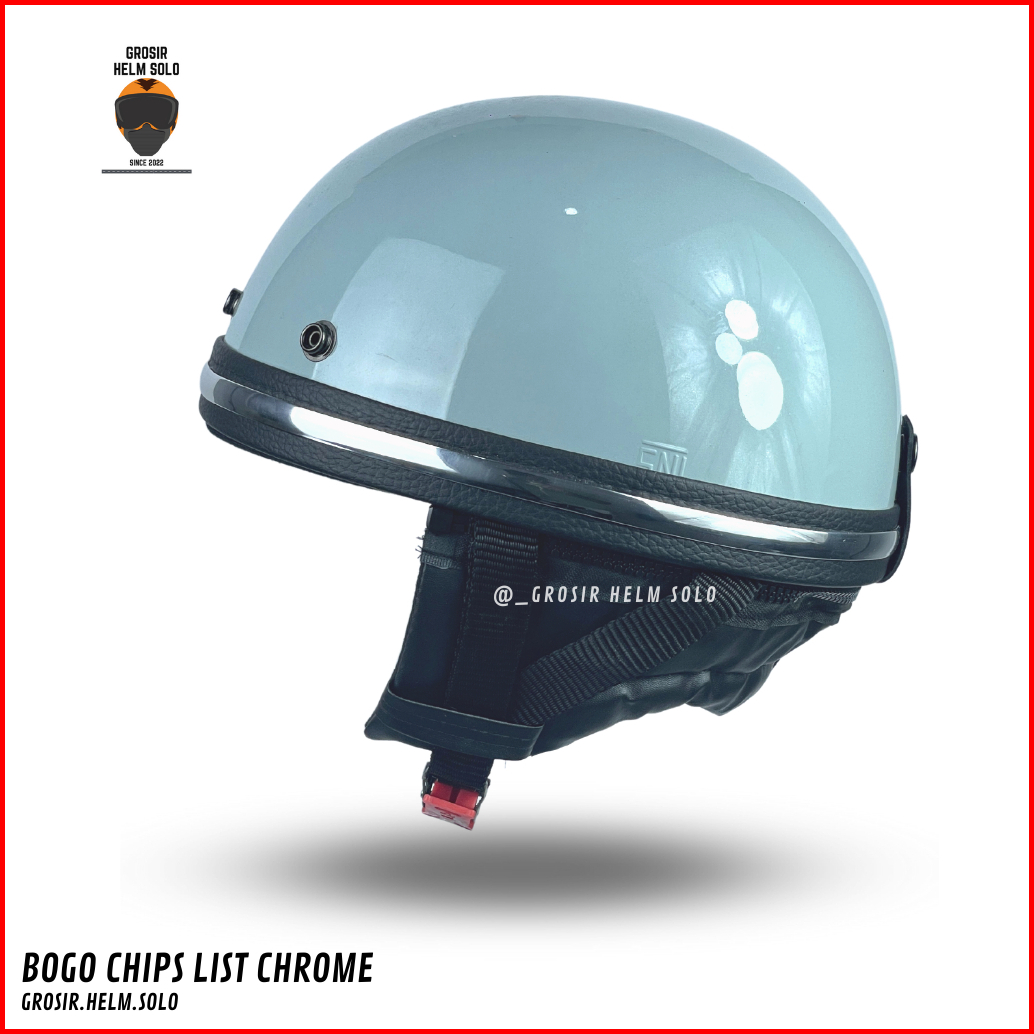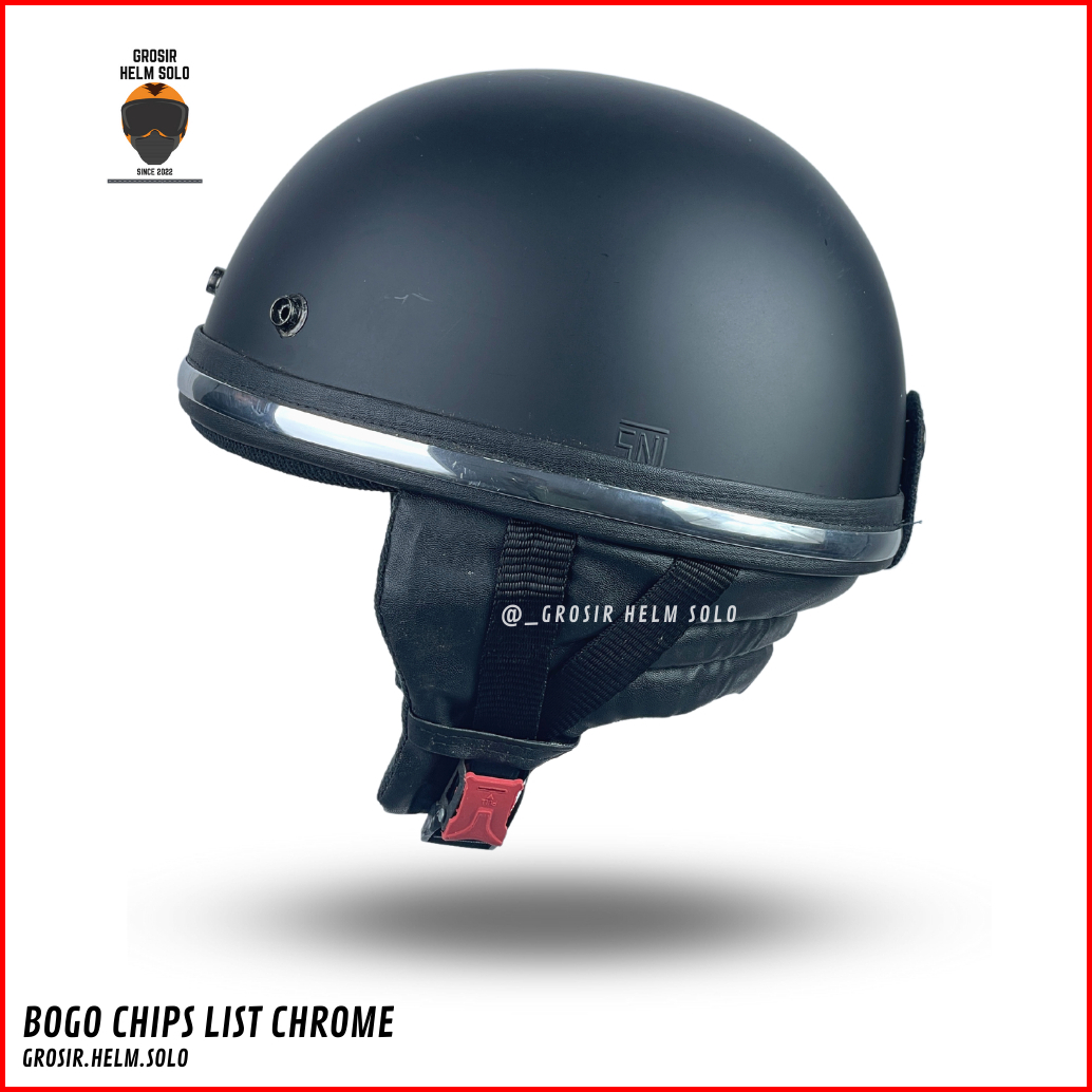 Helm Bogo Chips Retro Dewasa List Crom Polos Tanpa Kaca Terbaru Sni