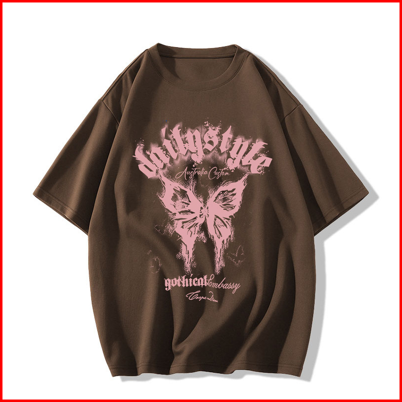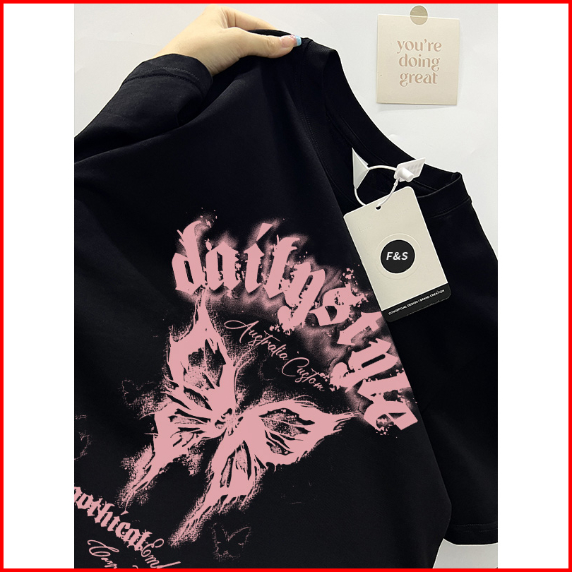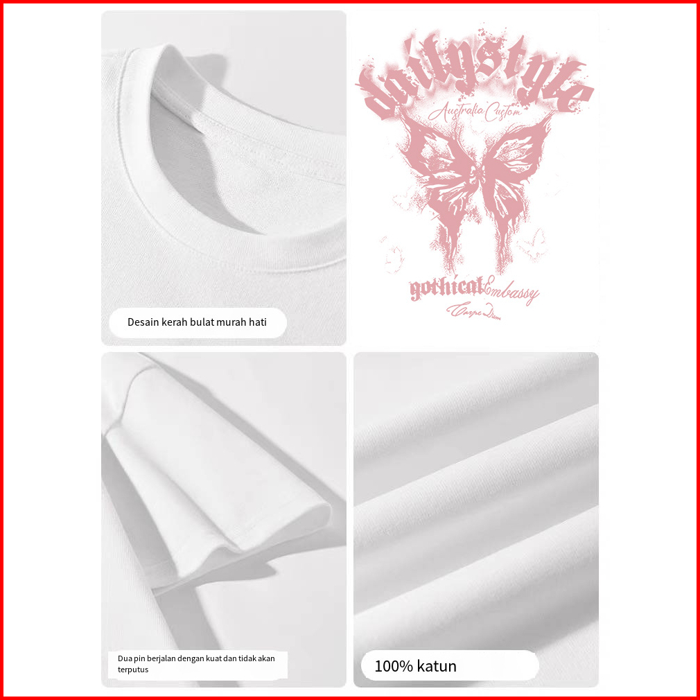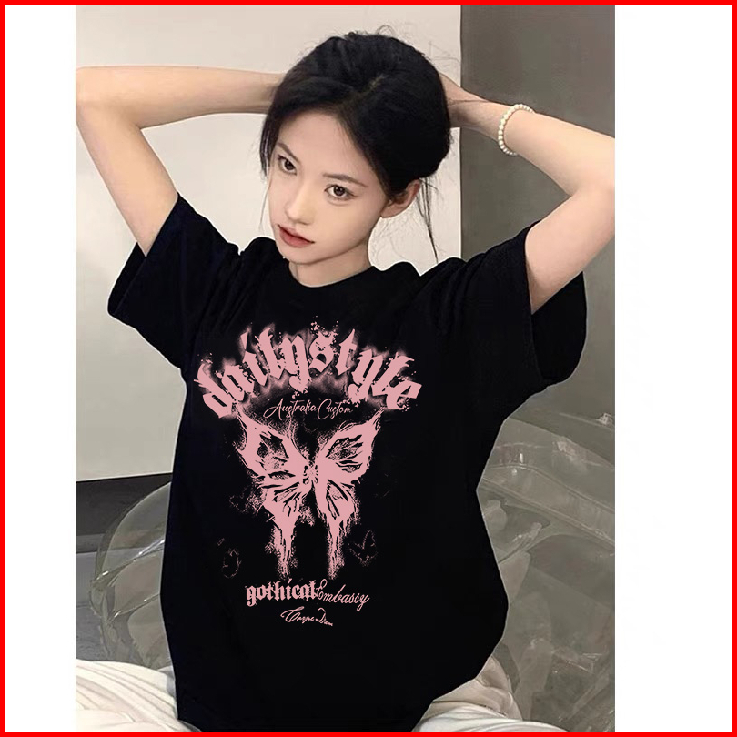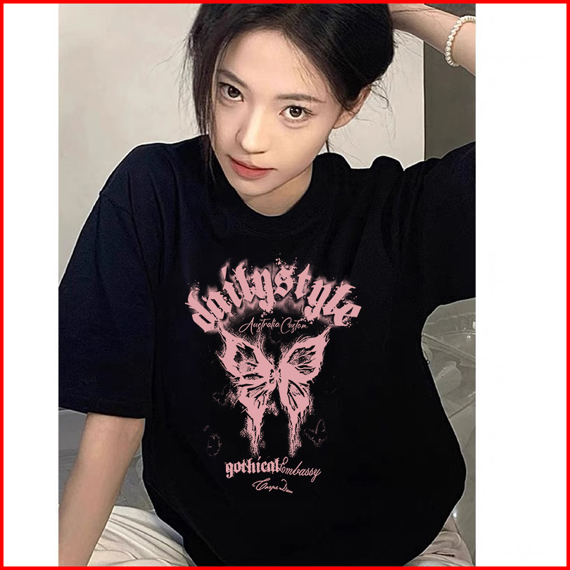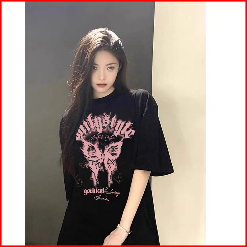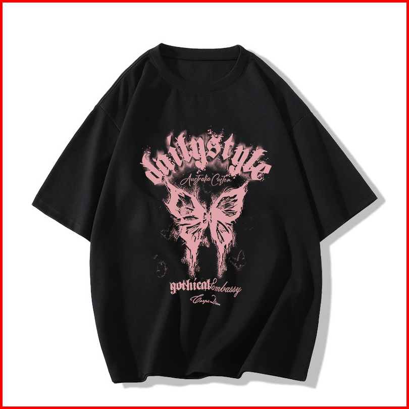 Fastfash Hitam T-shirt 100 Cotton Baju Kaos Oversize Unisex Kaos Butterfly Pria Dan Wanita