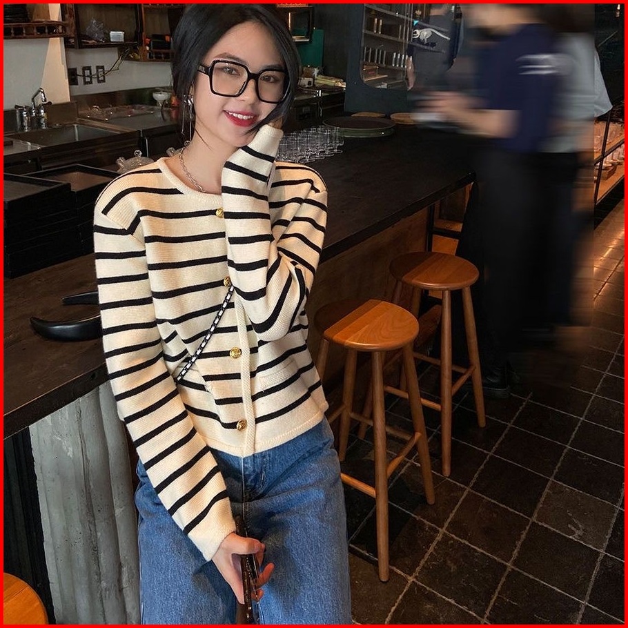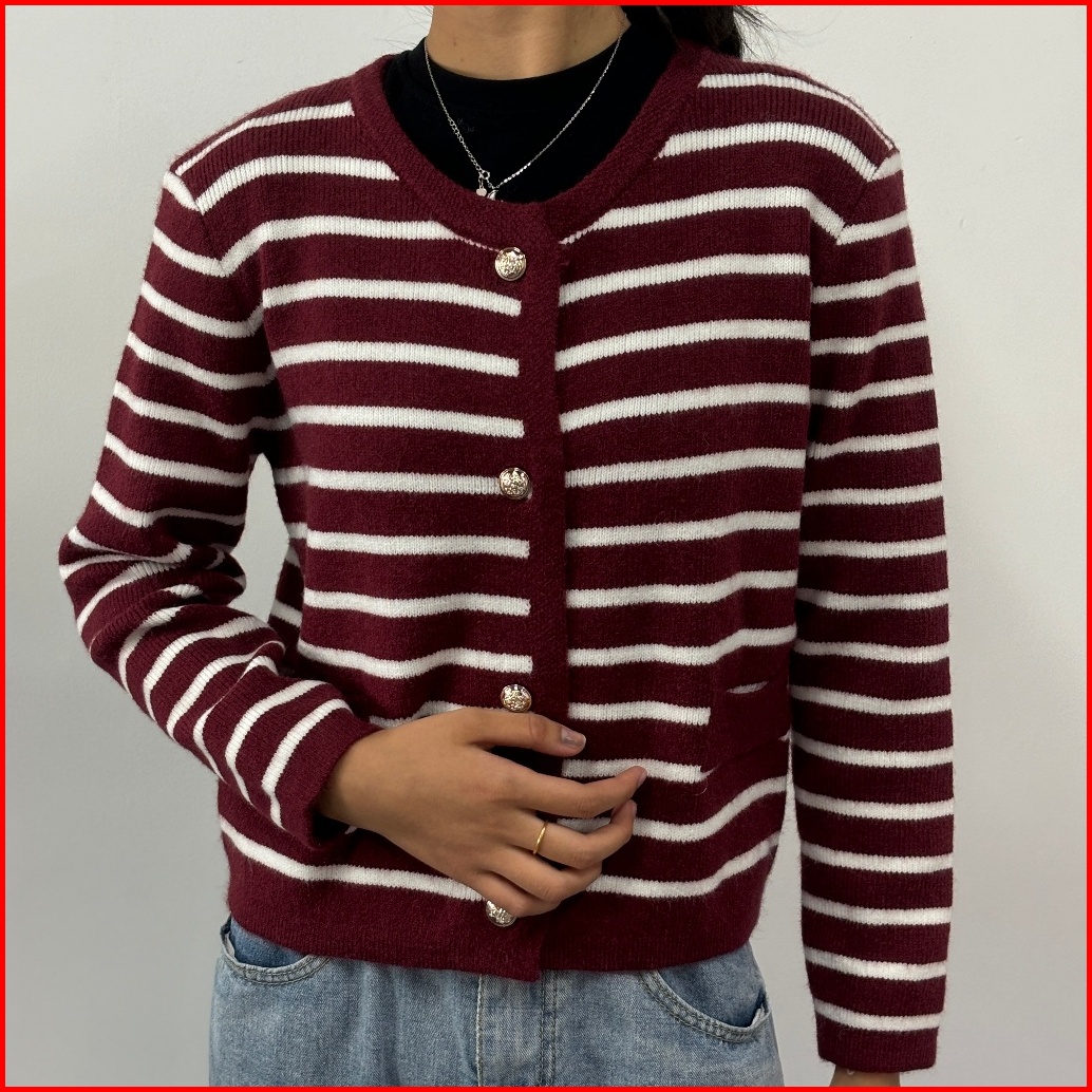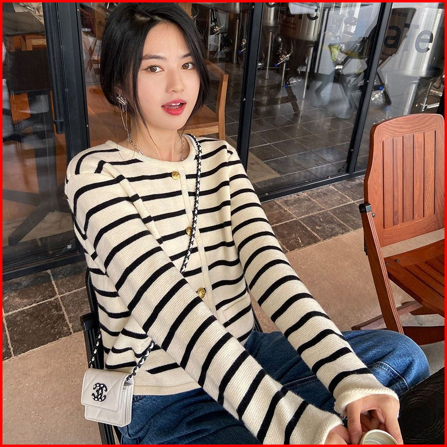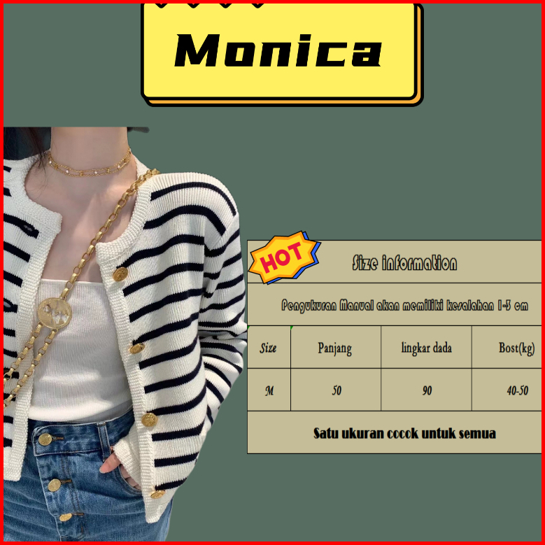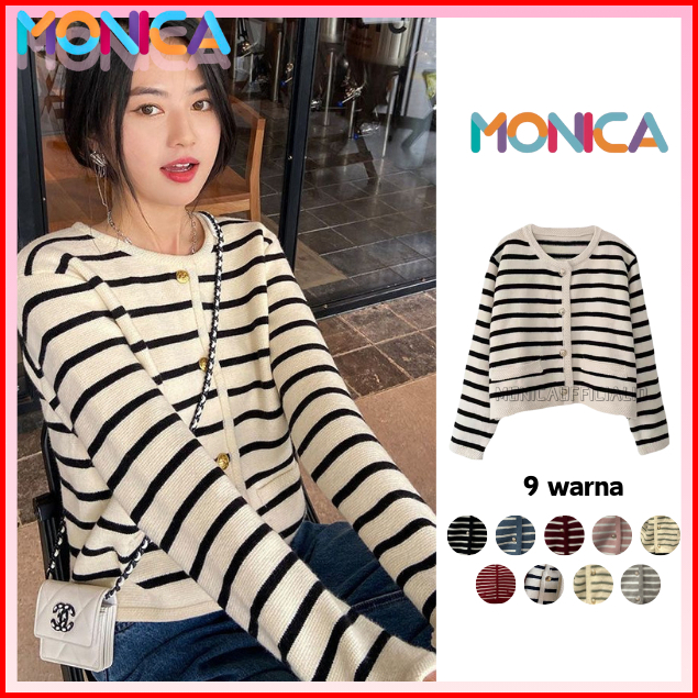 Monica Stripes Cardigan Knit Korean Vintage Cardigan Stripe Cardigan Wanita Cardigan Rajut 9 Warna