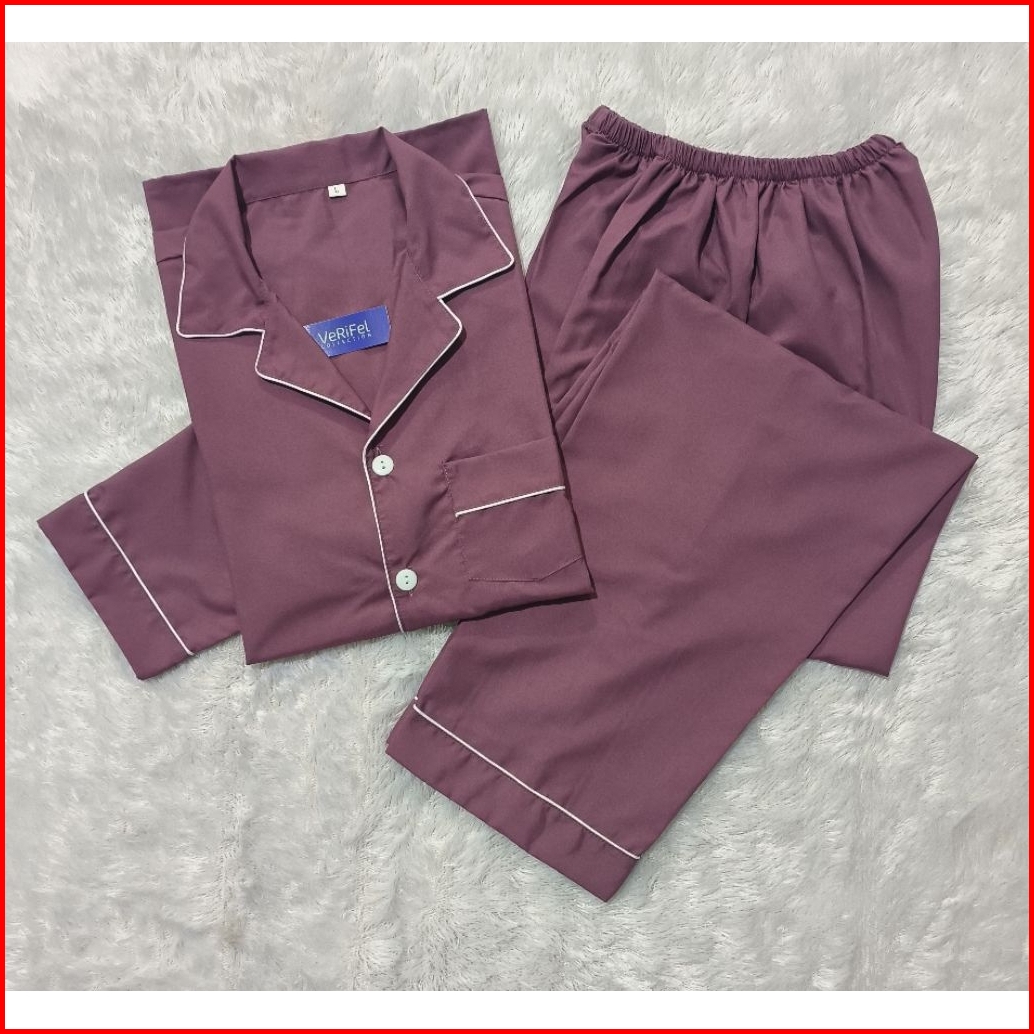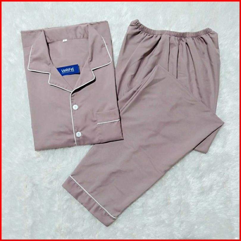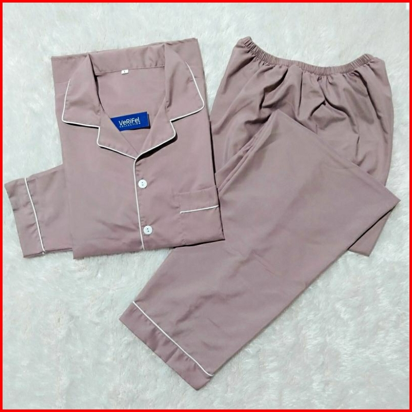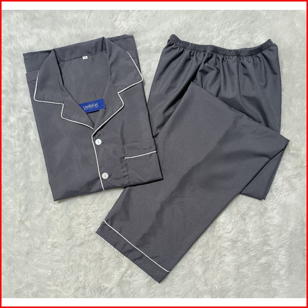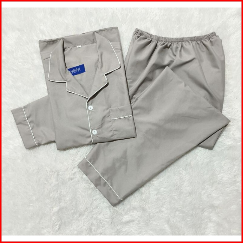 Verifel Piyama Abu Polos Baju Tidur Pria Wanita Remaja Dewasa Jumbo Katun Lembut Berkualitas Promo Murah Setelan Cp Pp F