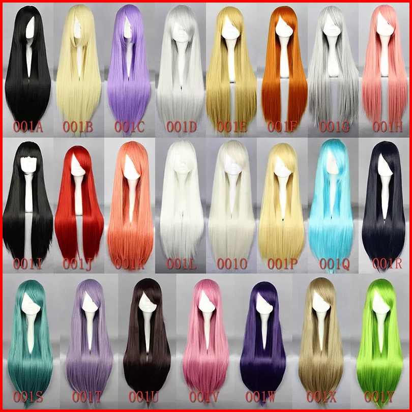 Wig Cosplay Mcoser Base 80cm Lurus Black Silver White Red Blonde Blue Pink Red Brown Orange Purple