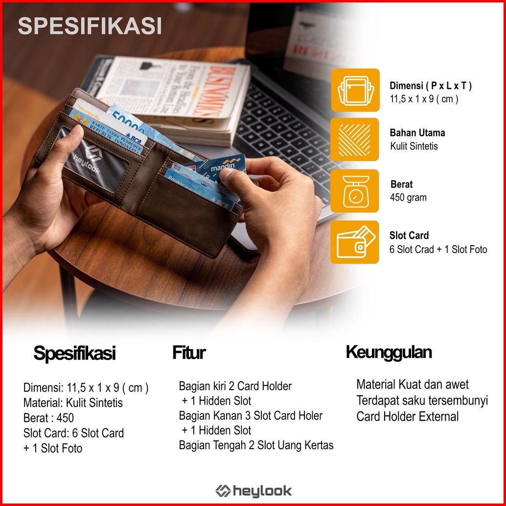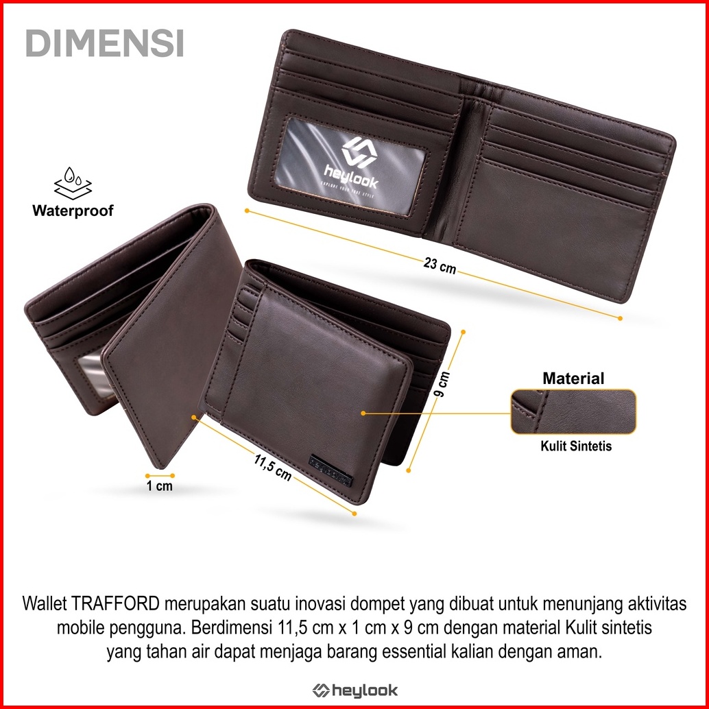 Heylook - Dompet Pria Trafford Dompet Kulit Pria Dompet Pendek Dompet Lipat Uang Dompet Stnk Dompet Kartu Water Resist D