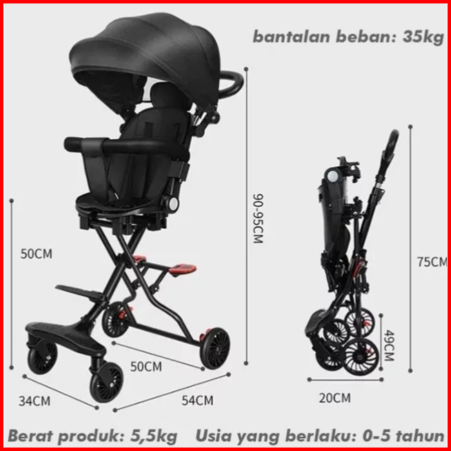 Mmflight Stroller Baby Lipat Travelling Stroller Anak Kereta Dorong Bayi 2 Arah 0-5 Tahun