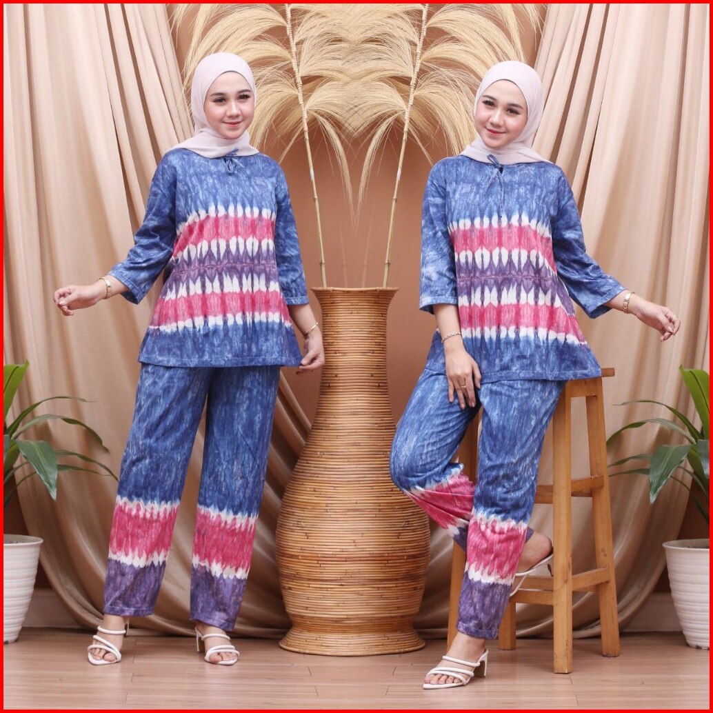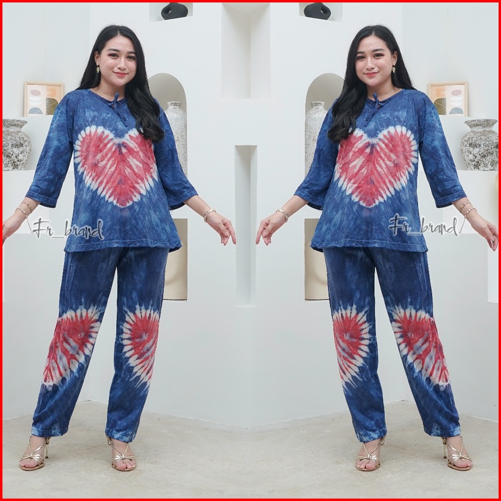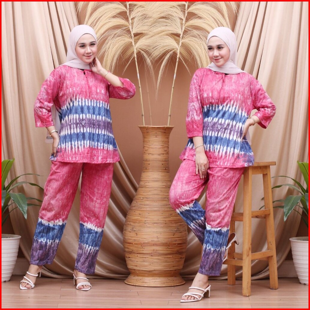 Terlaris One Set Setelan Baju Piyama Wanita Dewasa Kekinian Motif Tiedye Matt Kaos Cotton Adem Murah