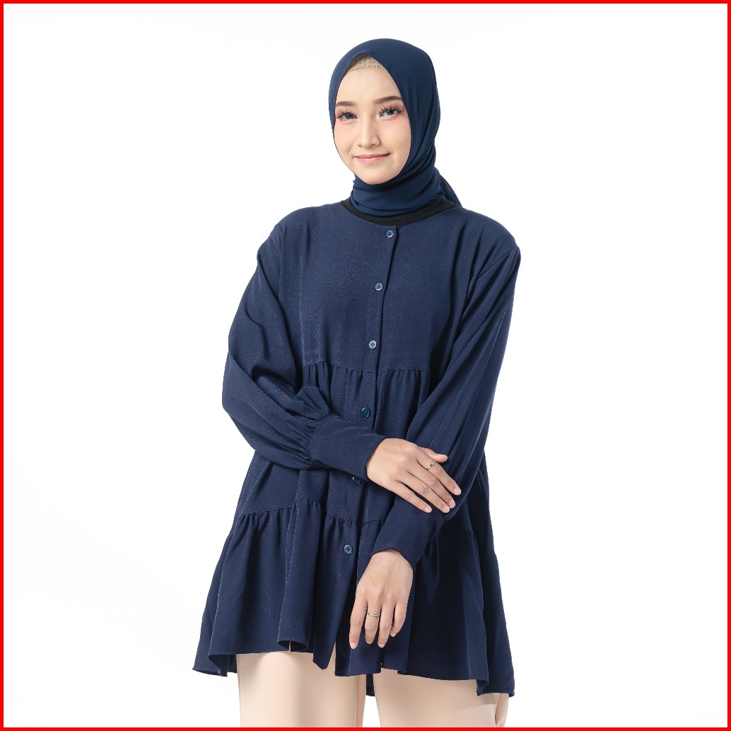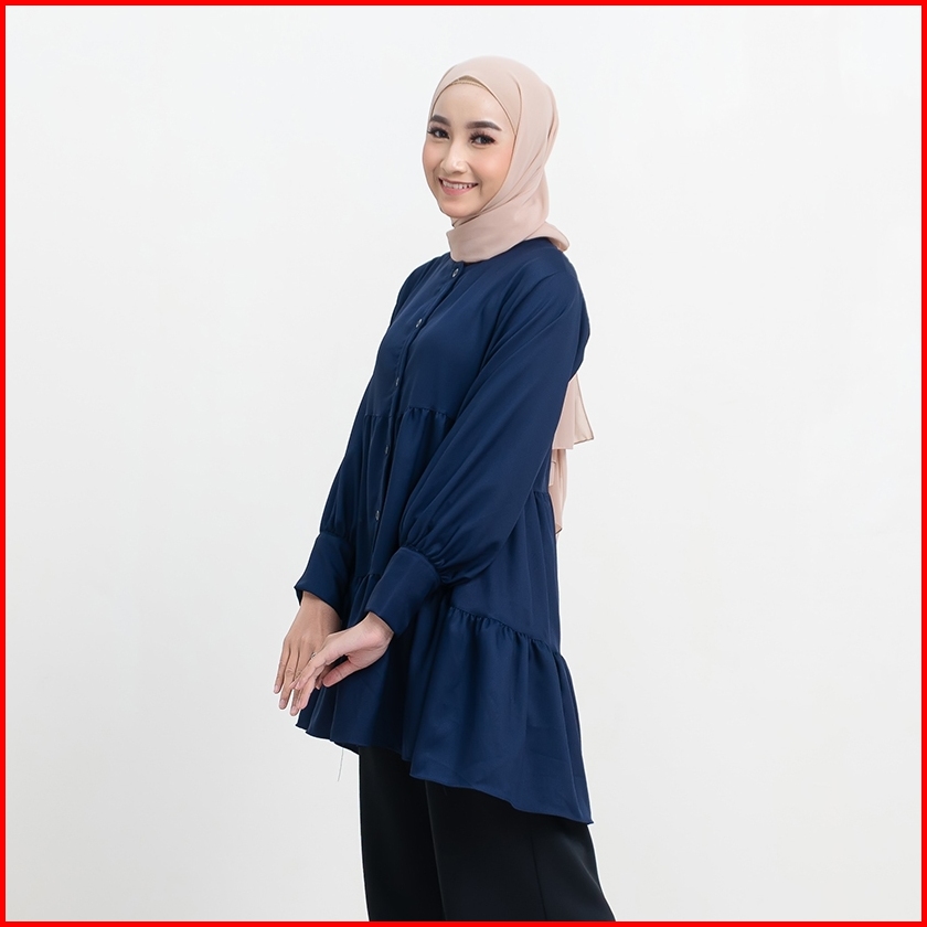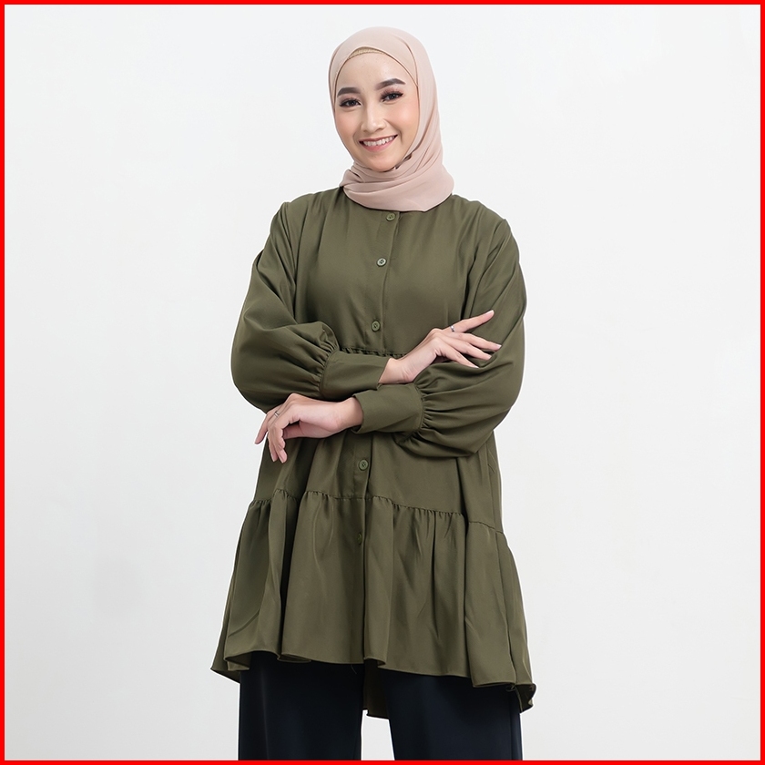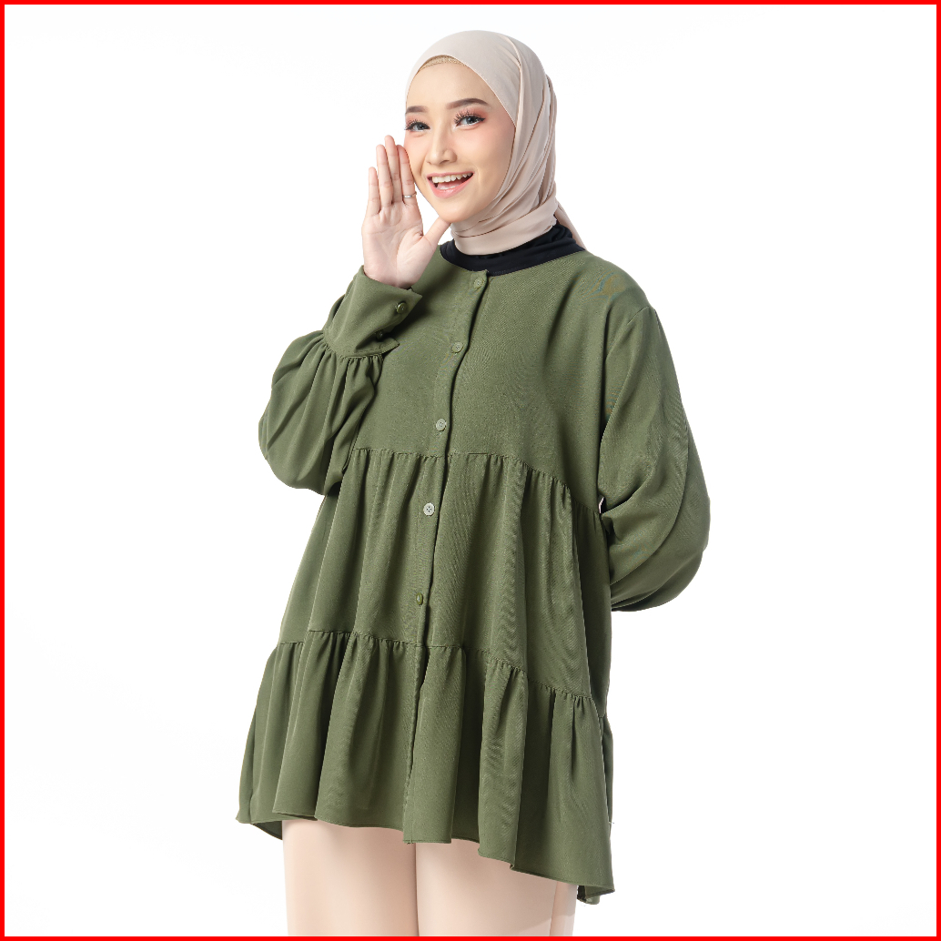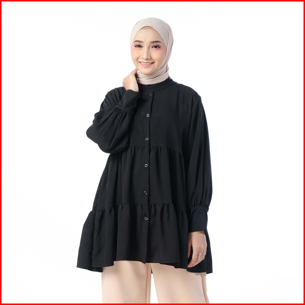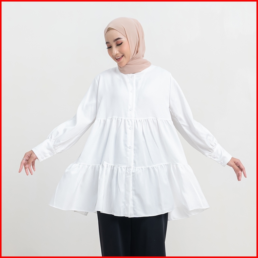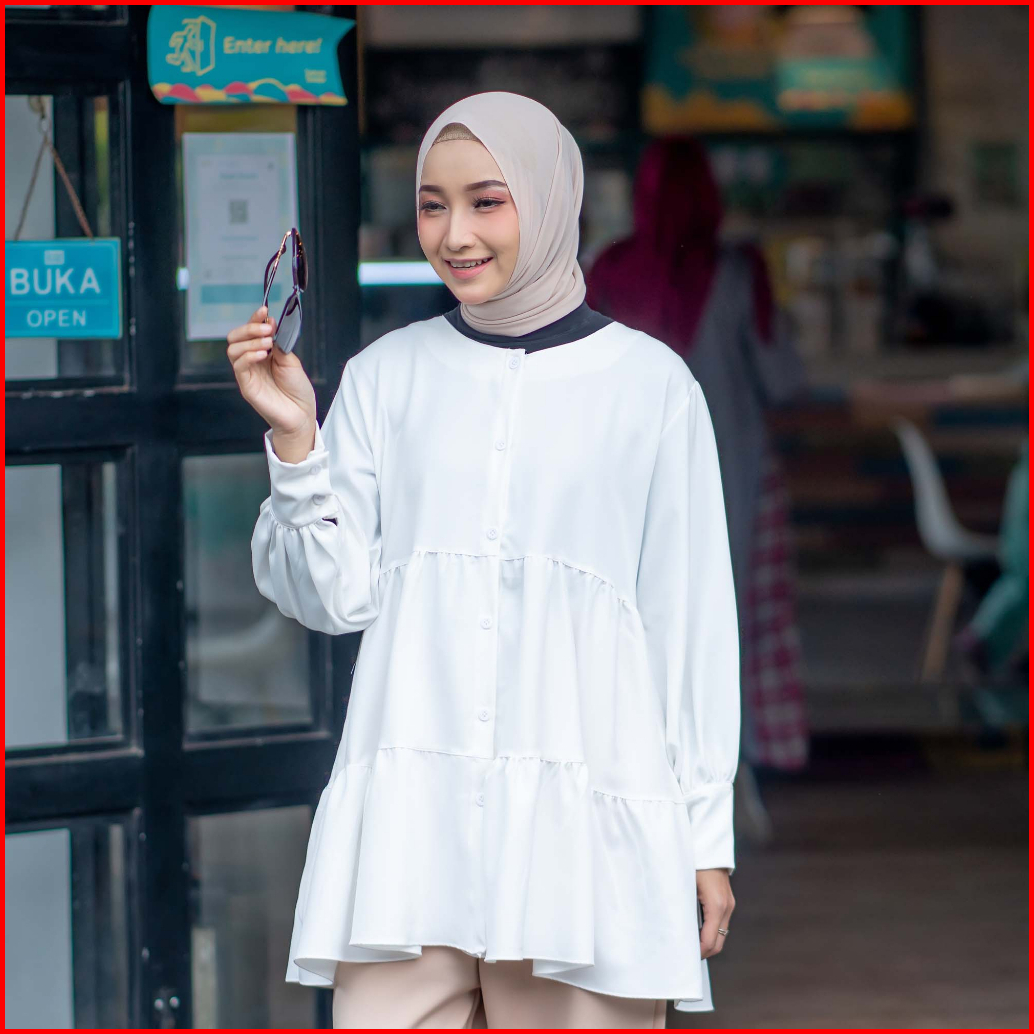 Amie Shop Jiandra Shirt Atasan Kemeja Wanita Lengan Panjang Ruffle Serut Ootd Ngampus 2025