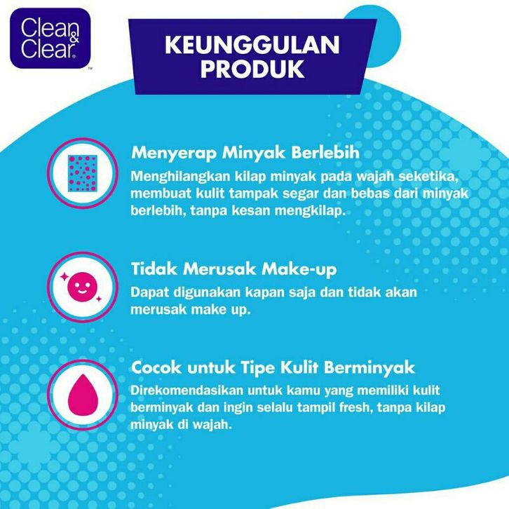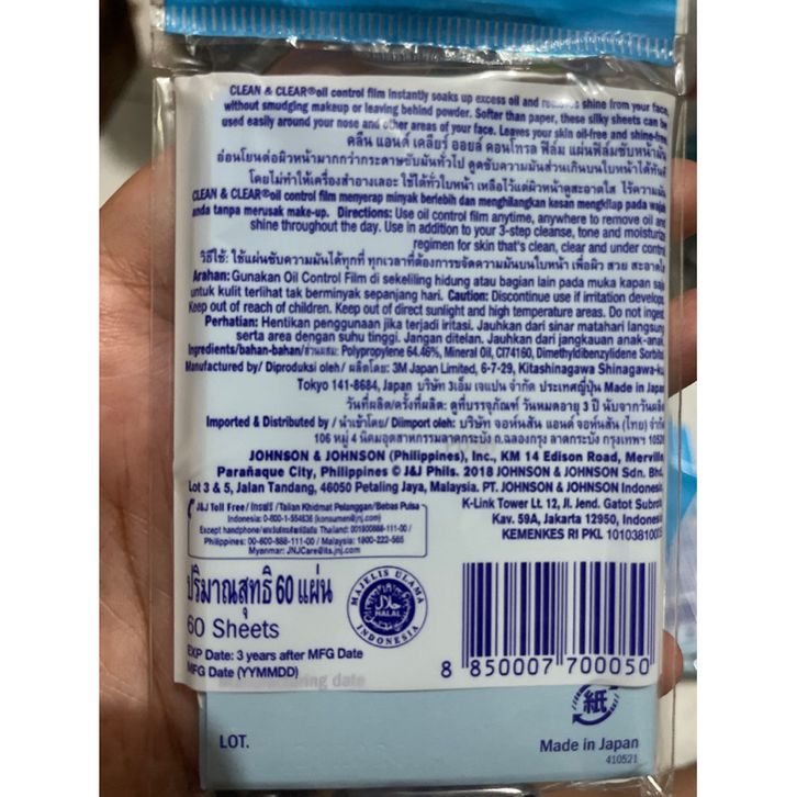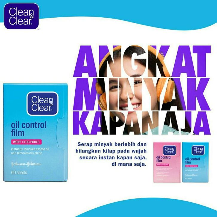 CLEAN & CLEAR OIL CONTROL FILM / KERTAS MINYAK WAJAH BLUE 60 SHEETS / FACE PAPER