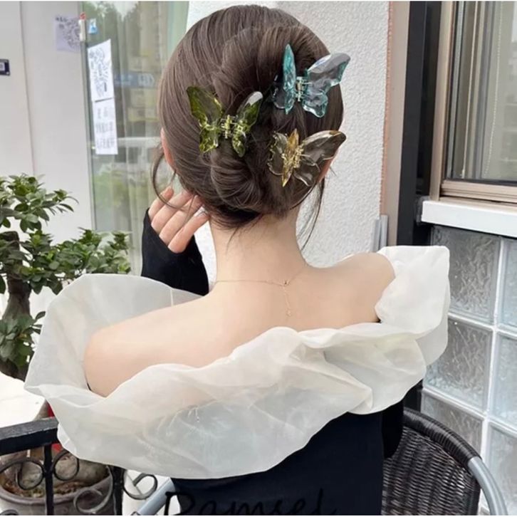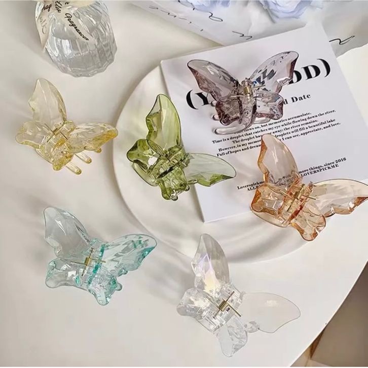 JEPIT JEDAI BENTUK KUPU KUPU2 BESAR KRISTAL BENING TRANSPARAN ESTETIK AESTHETIC LUCU