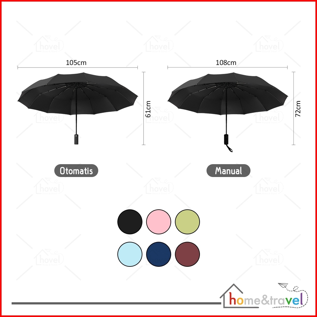 Hovelshop Payung Lipat Jumbo Model Manual Otomatis Buka Tutup Polos Jari Kuat Tahan Badai
