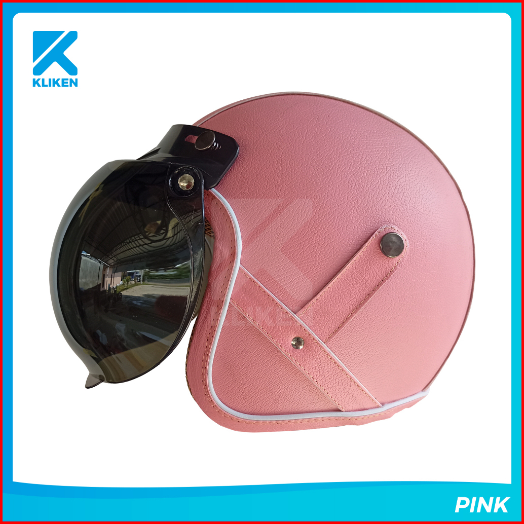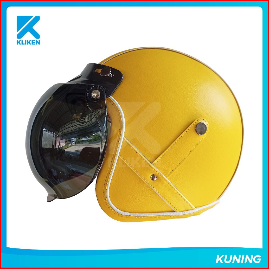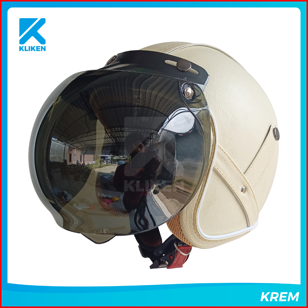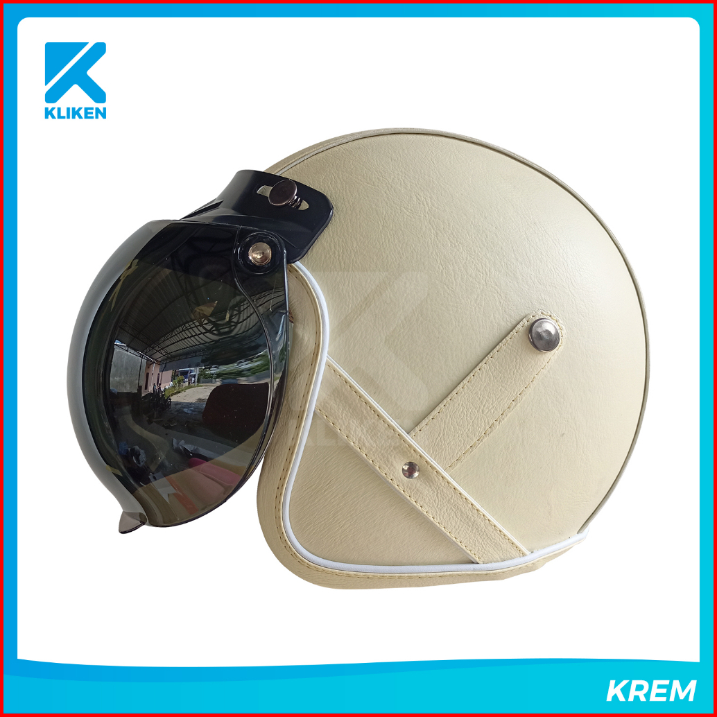 Helm Bogo Dewasa Full Leher Pres Kulit Dengan Kaca Cembung