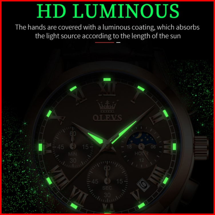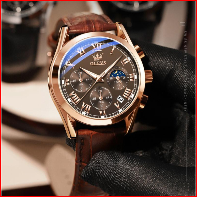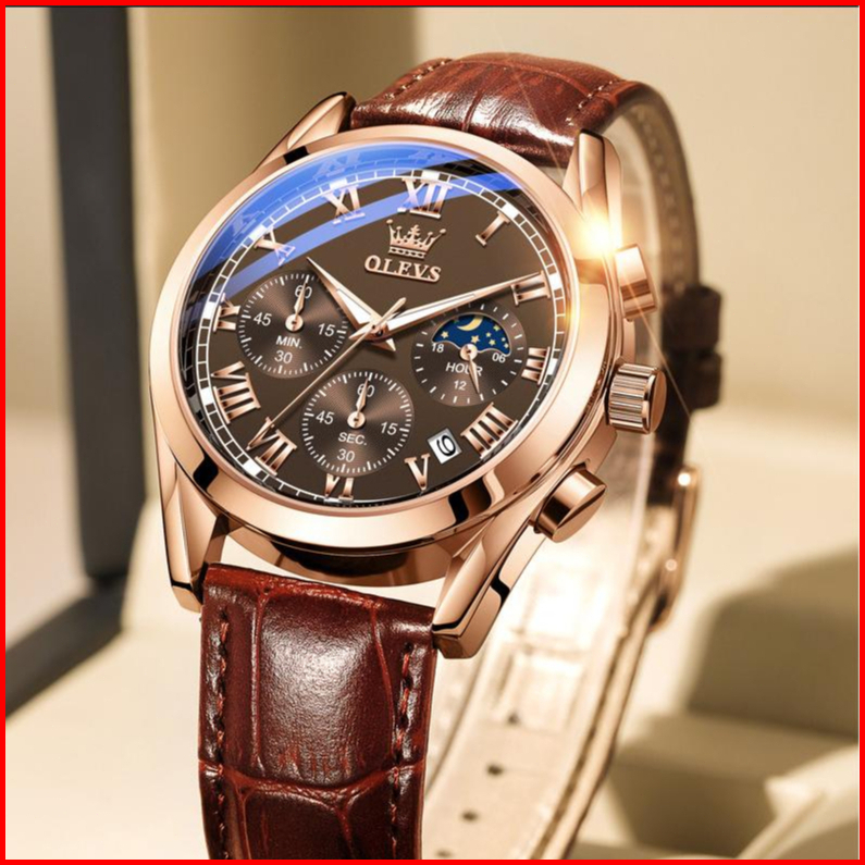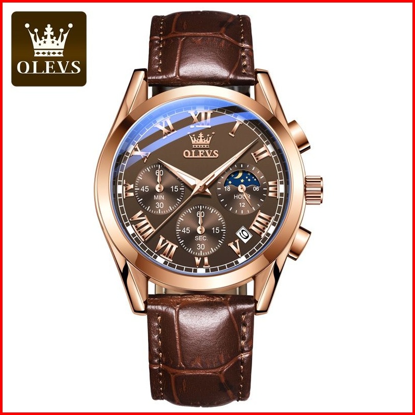 Olevs 2871 Jam Tangan Pria Anti Air Original 100 Chrono Aktif Luxury Bisnis Tali Kulit Quartz Watch