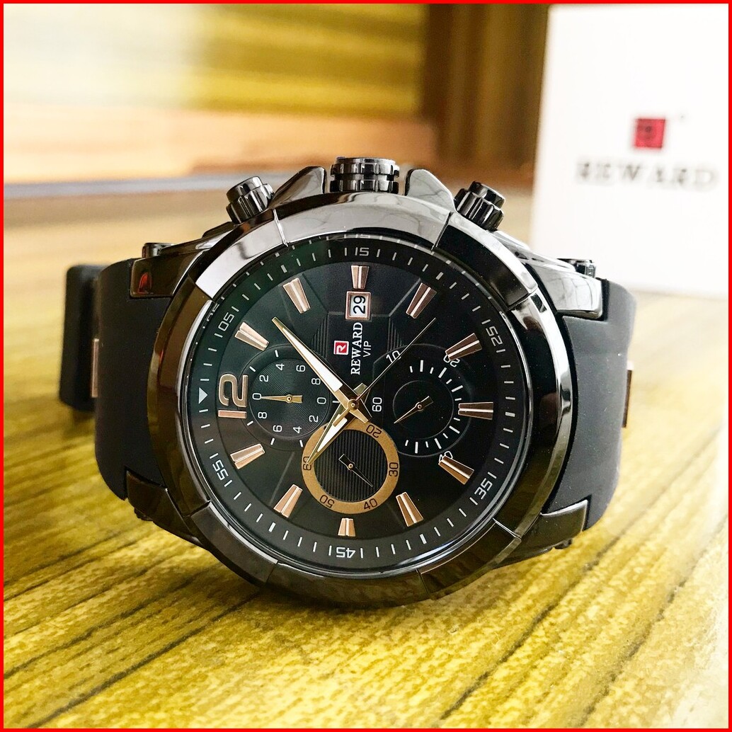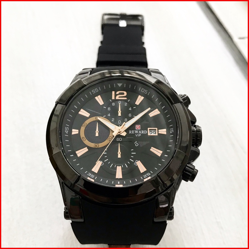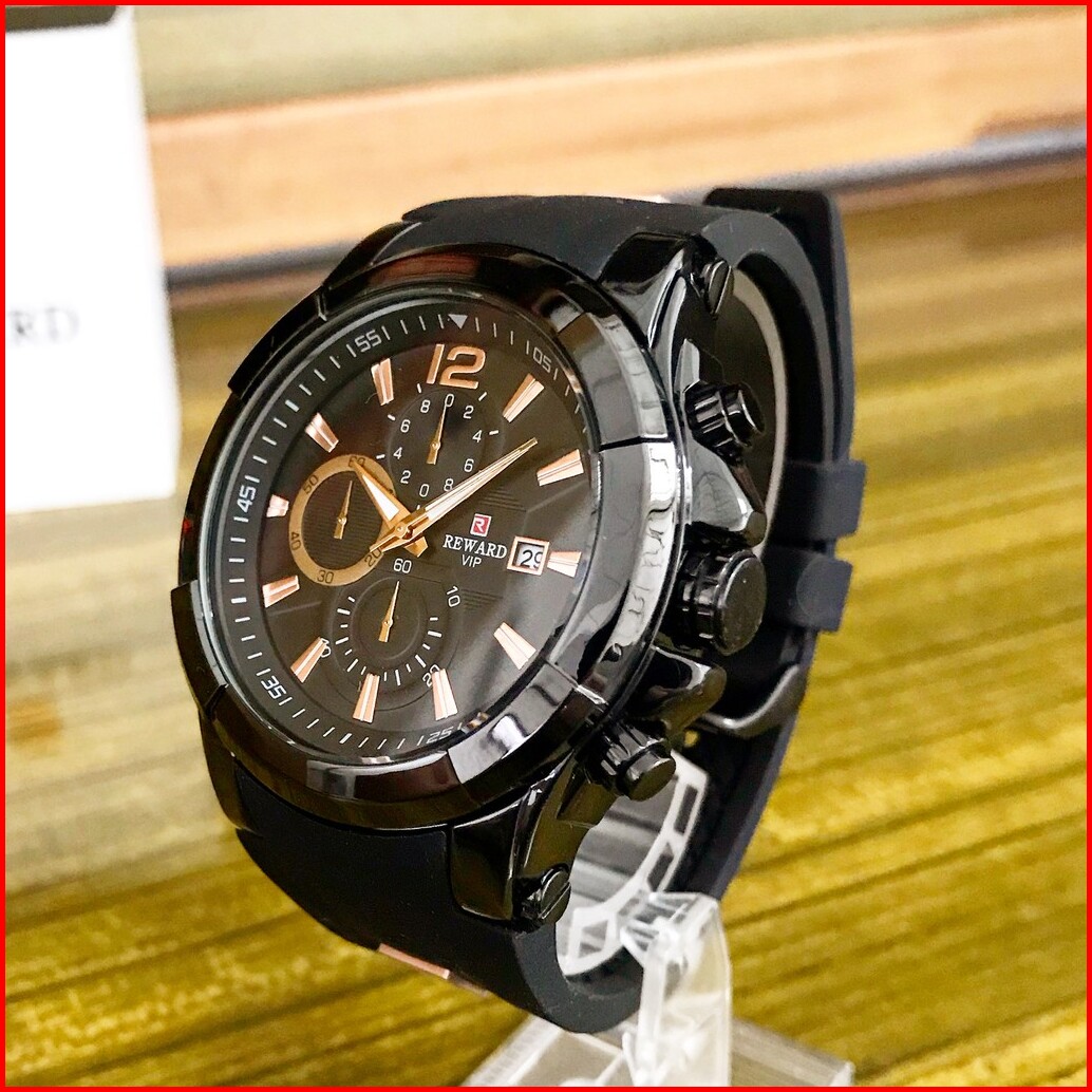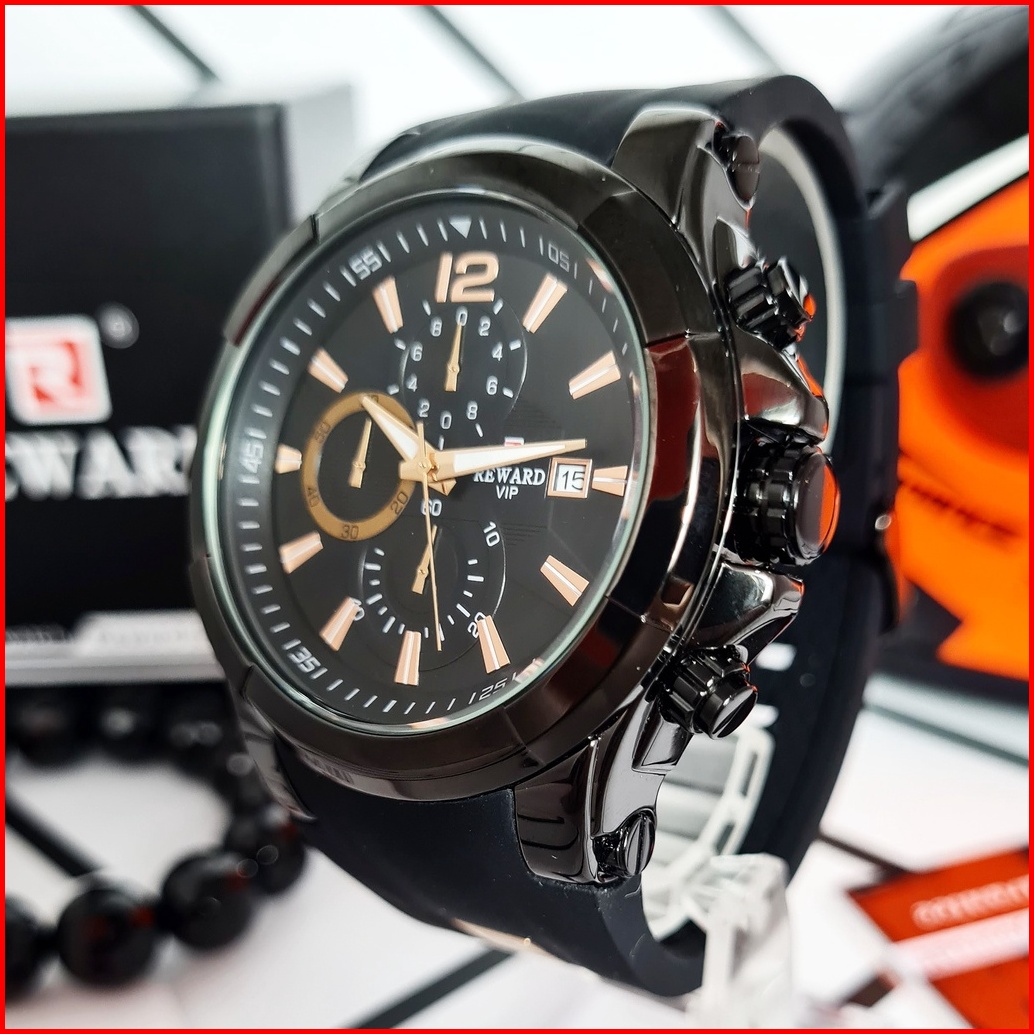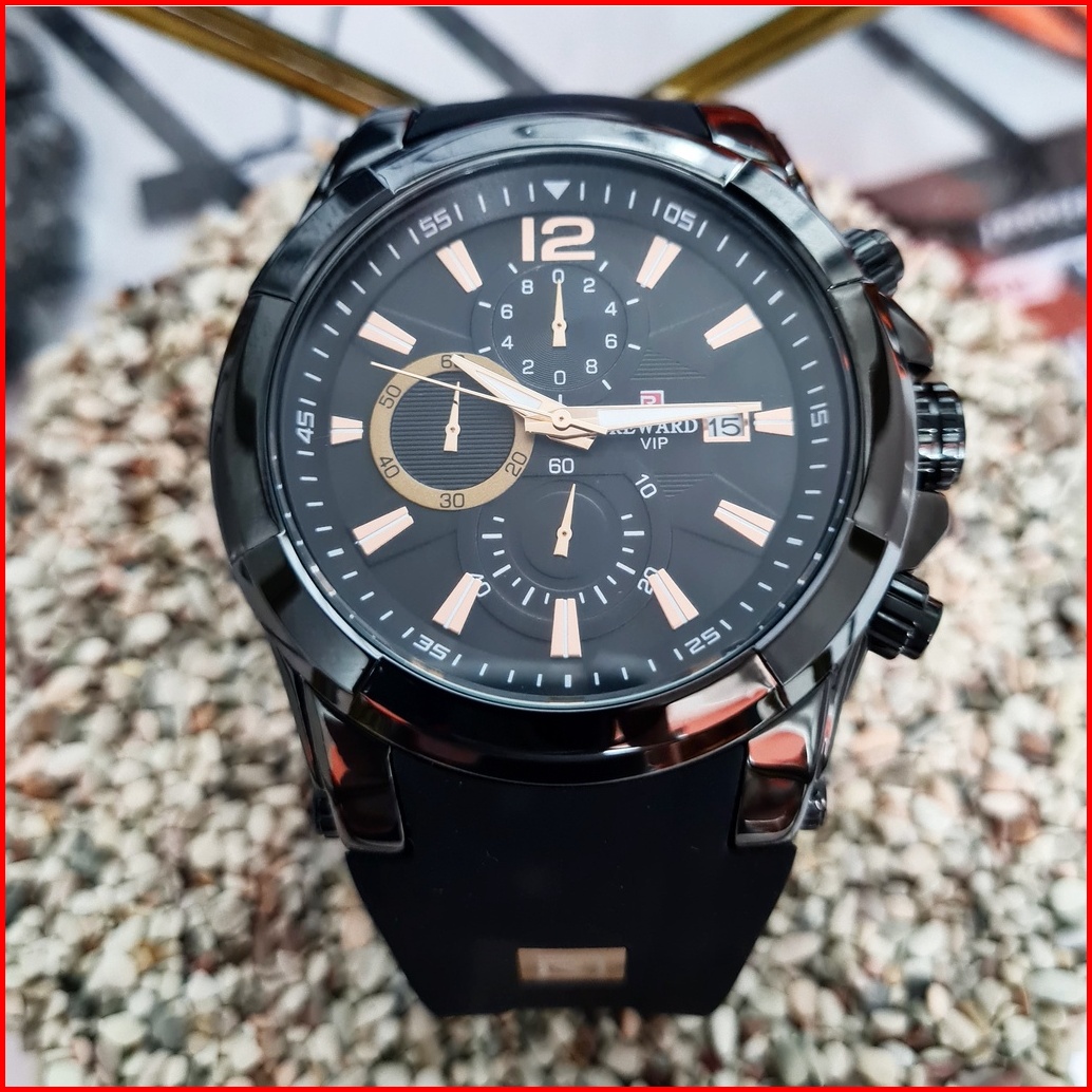 Jam Tangan Pria Original Reward Bayonet Black Hitam Rubber Karet Silikon Analog Chrono Aktif