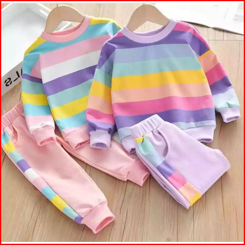 Setelan Sweater Pelangi Anak Perempuan Usia 1-5 Tahun