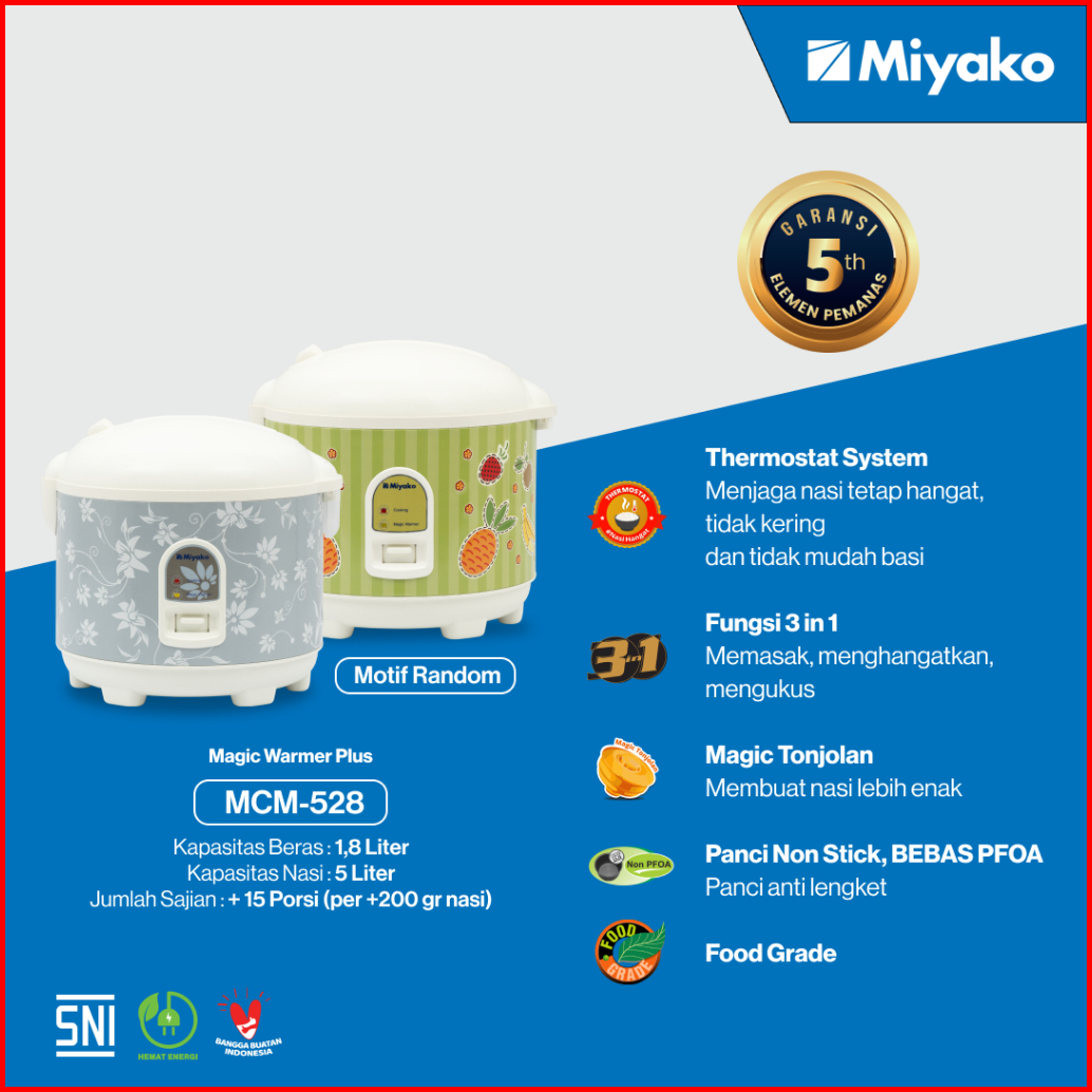 Ready Miyako Rice Cooker Magic Com Mcm528 Mcm 528 Mcm-528 1 8 Liter Garansi Resmi