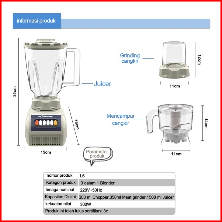 Maimeite Blender Multifungsi High Speed Juicer Elektronik 3 In 1 Kapasitas Pengaduk 1.5l
