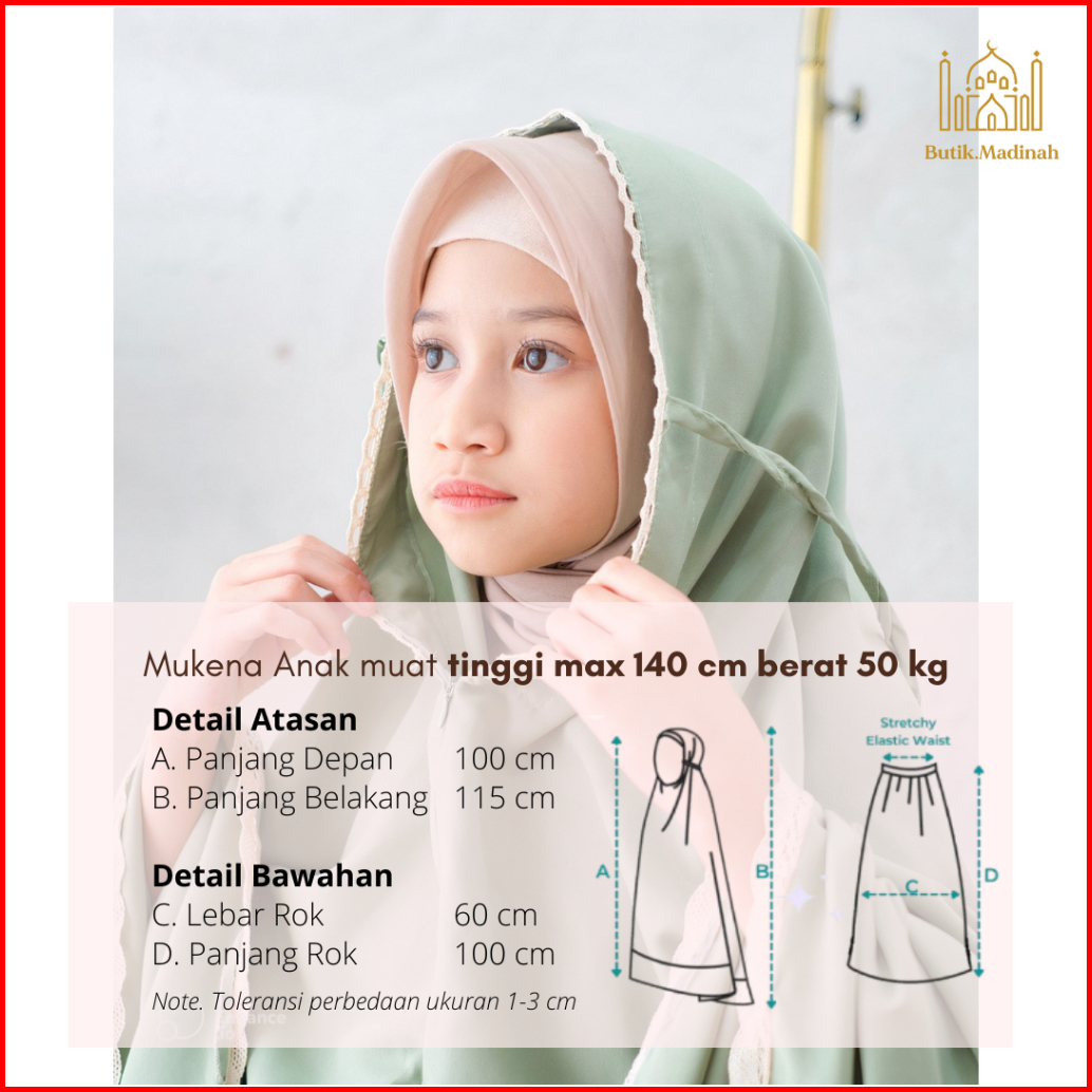 Butik.madinah Mukena Anak Azzura Traveling 2 In 1 Fatimah Katun Free Tas Sajadah Amplop