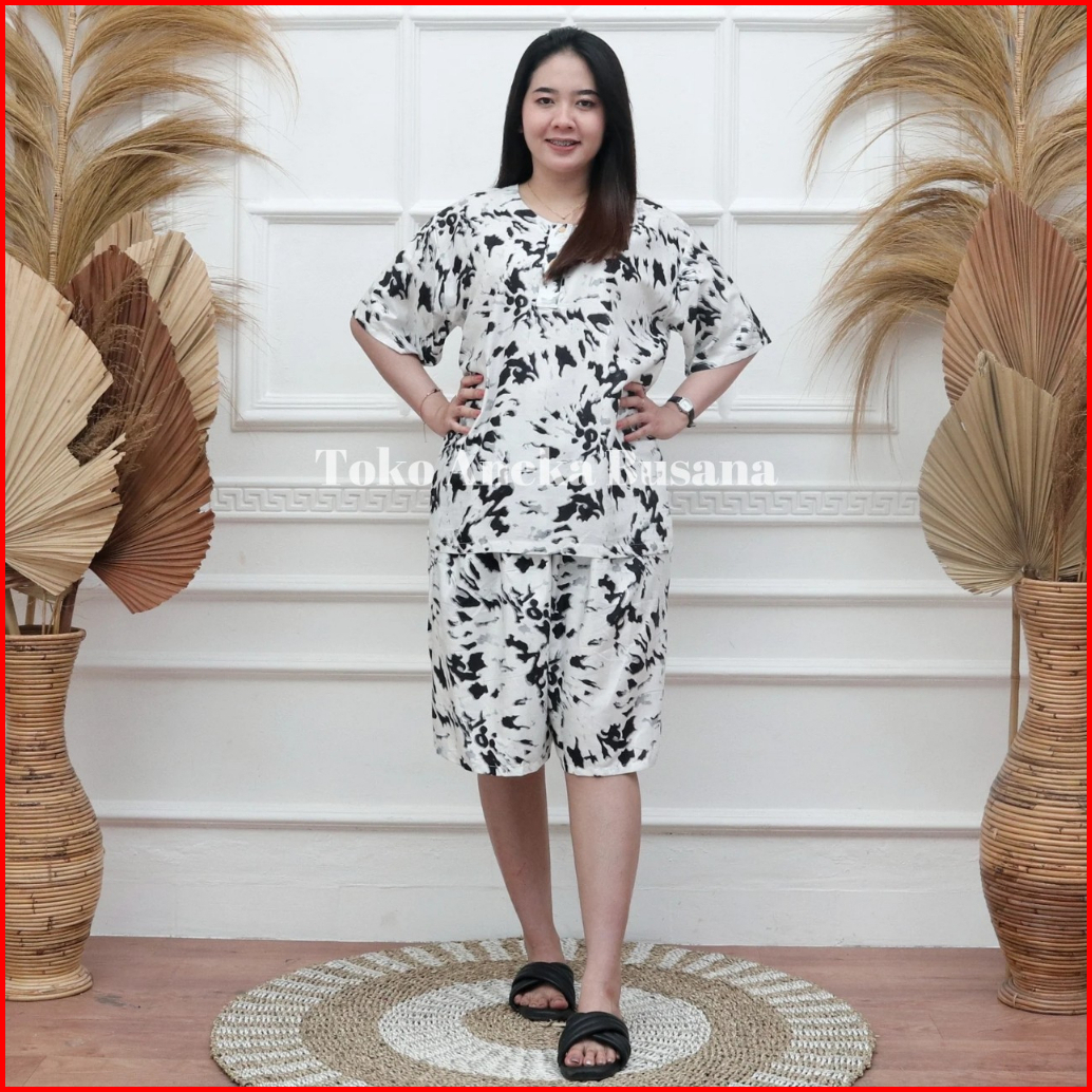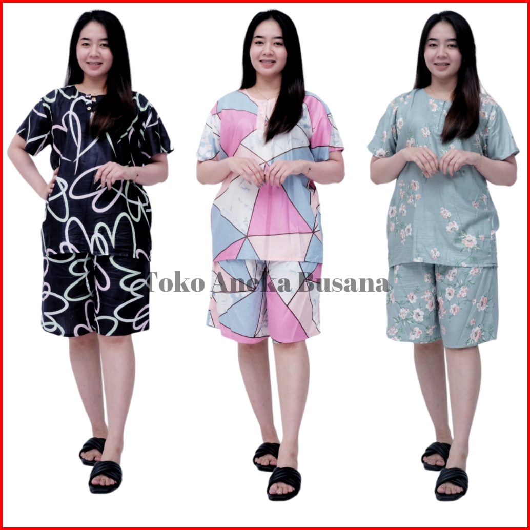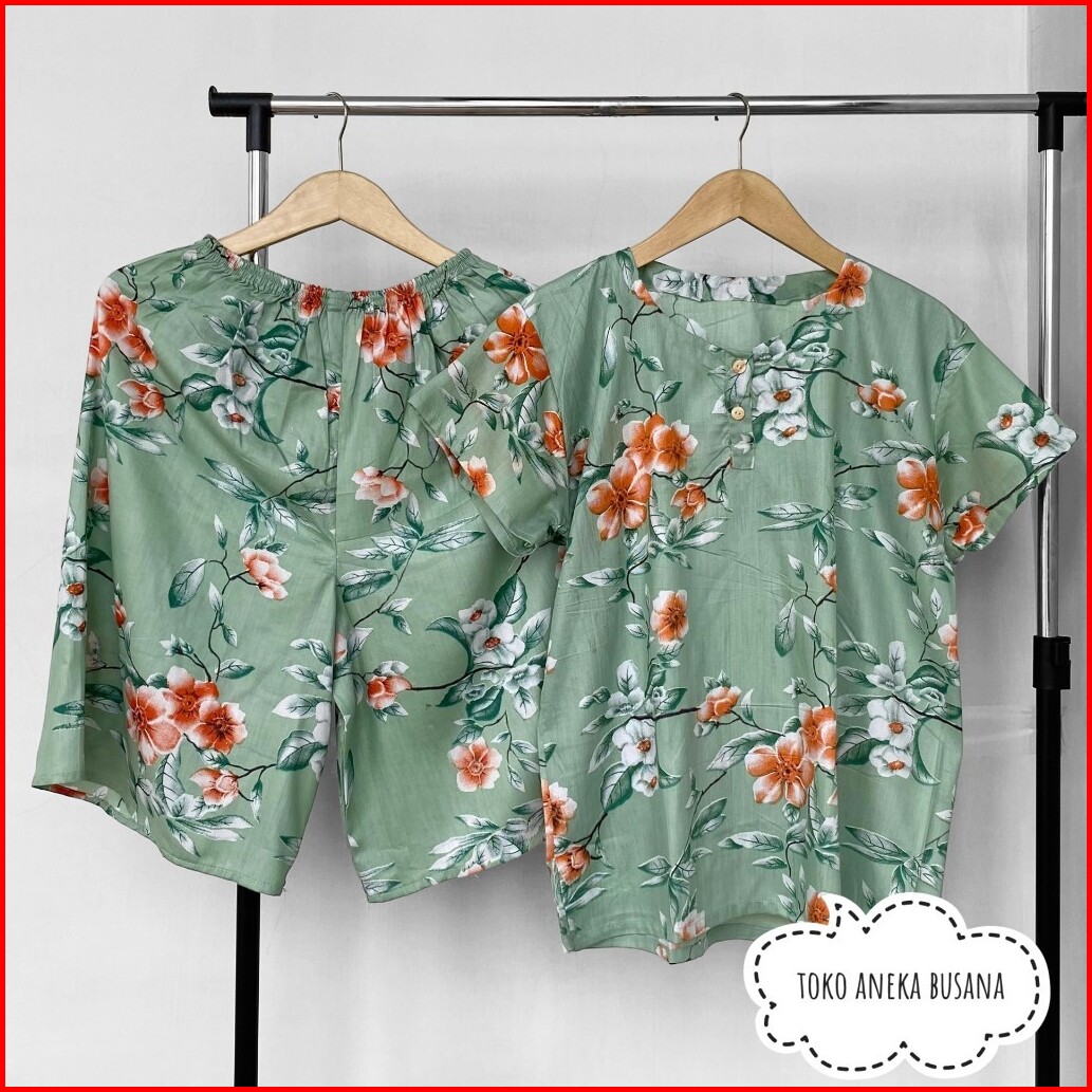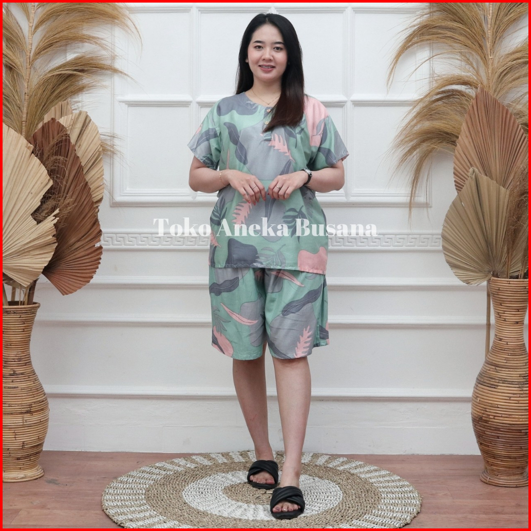 Setelan Baju Tidur Piyama Pendek Motif Daun 002 Bahan Rayon