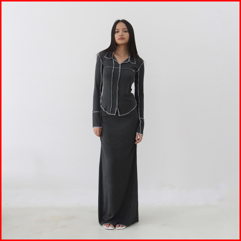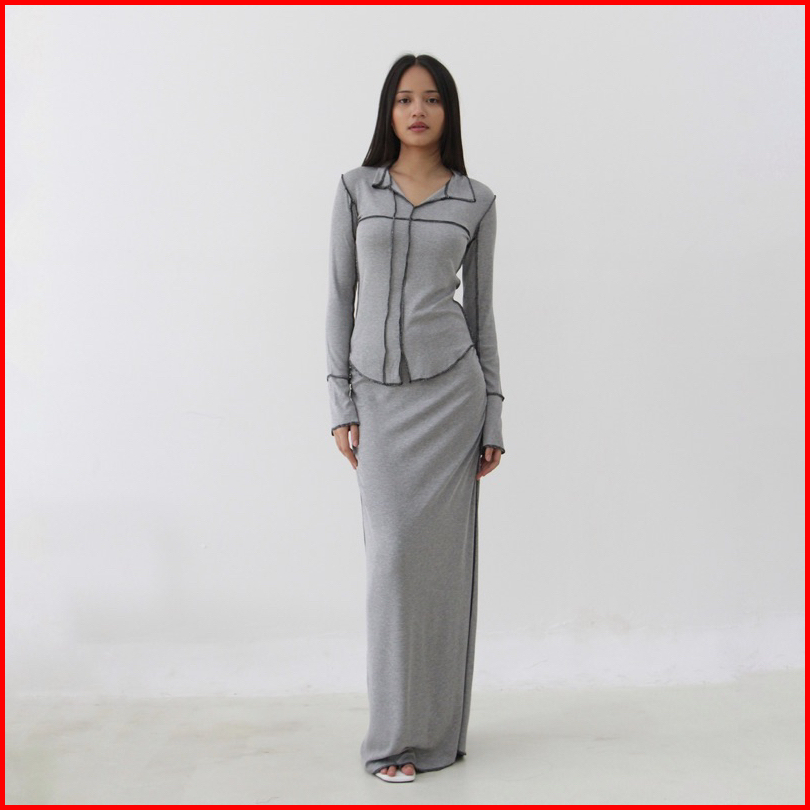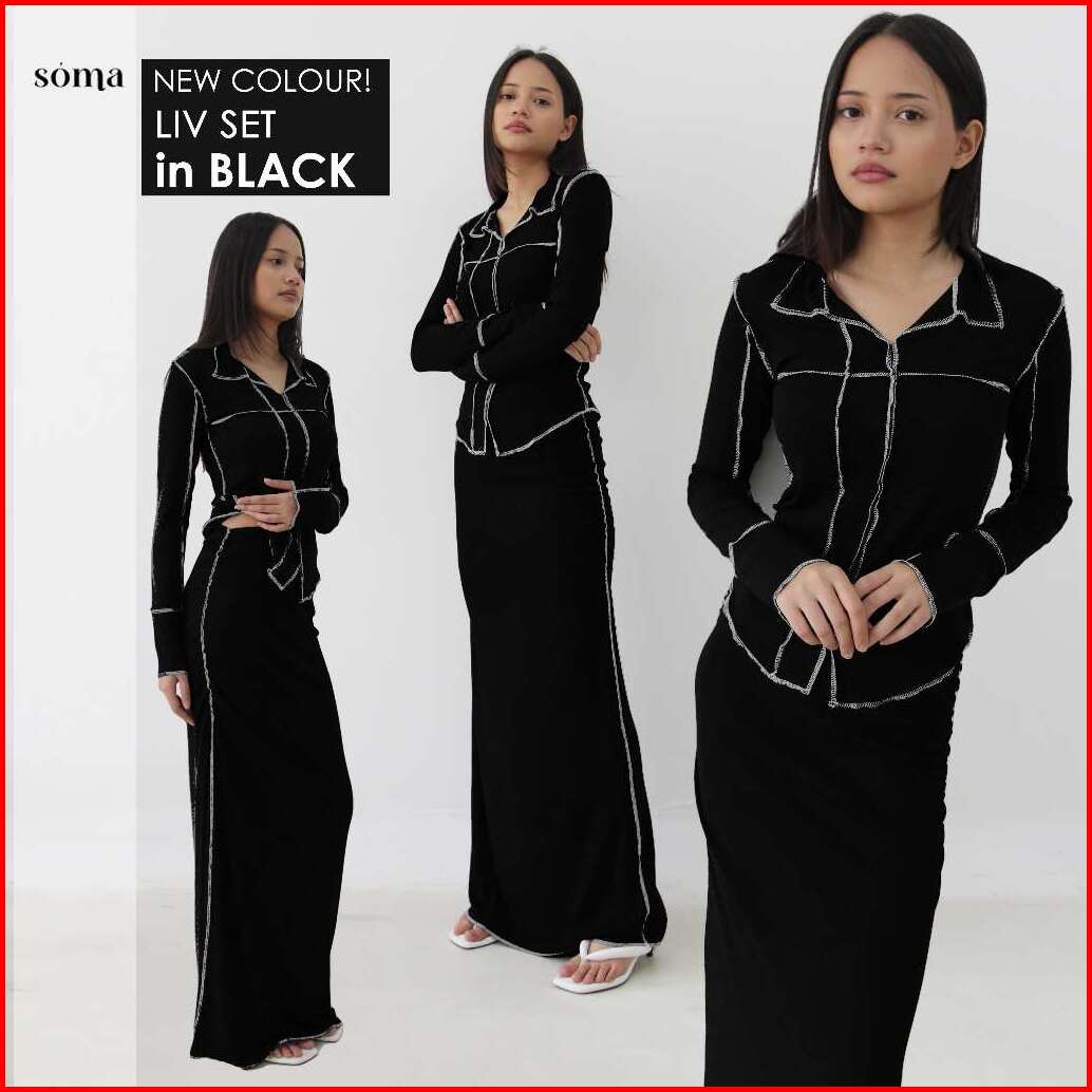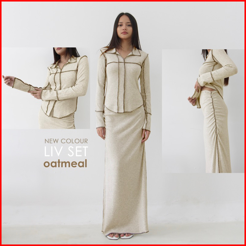 Liv Set - Setelan Wanita Oneset Lengan Panjang Rok Knit Rib Premium Shirt Skirt Baju Set Celana Highwaist Soma