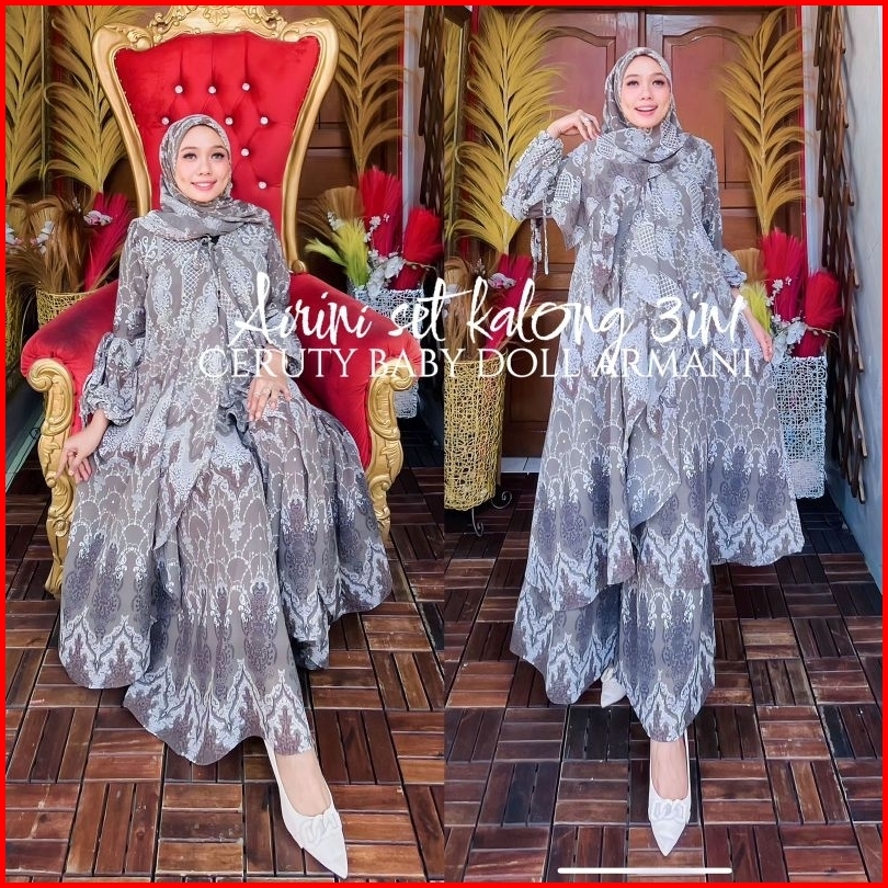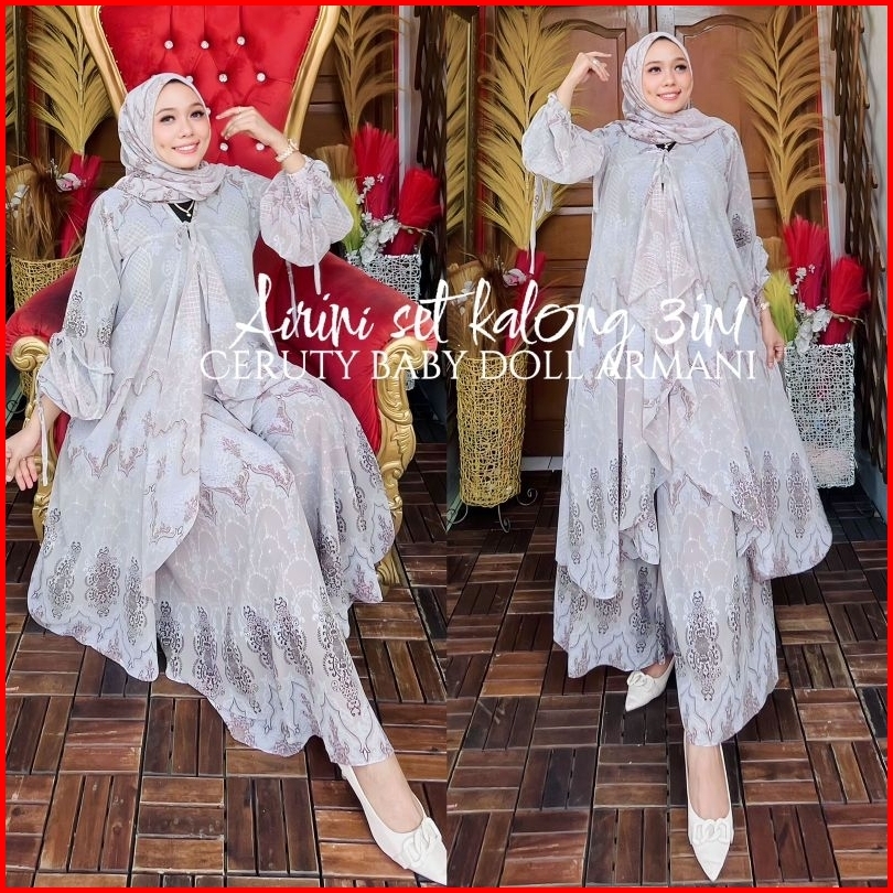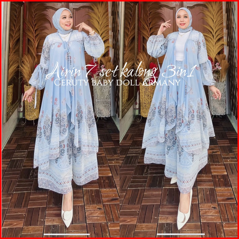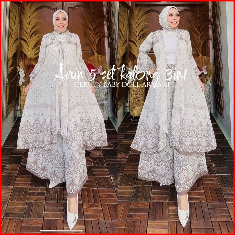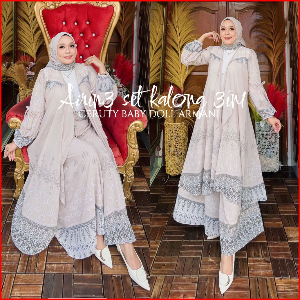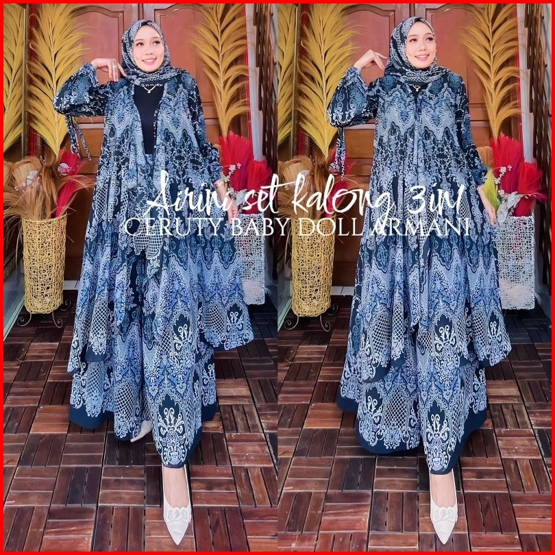 Setelan Kalong Airin Cantik Dan Anggun Sudah Satu Set Kardigan Jilbab Segi 4 Dan Celana Kulot
