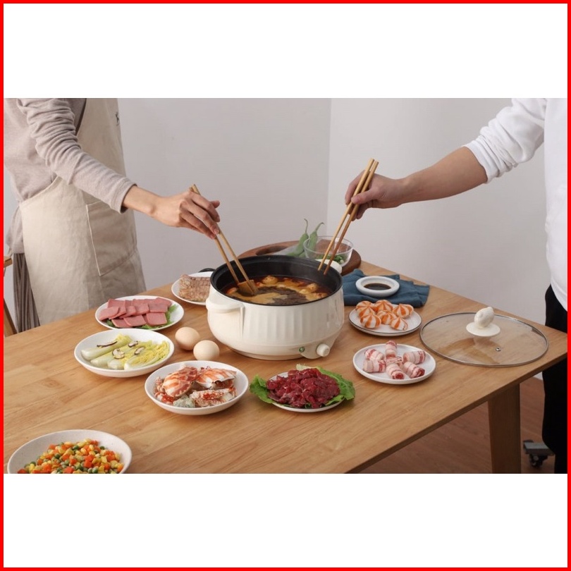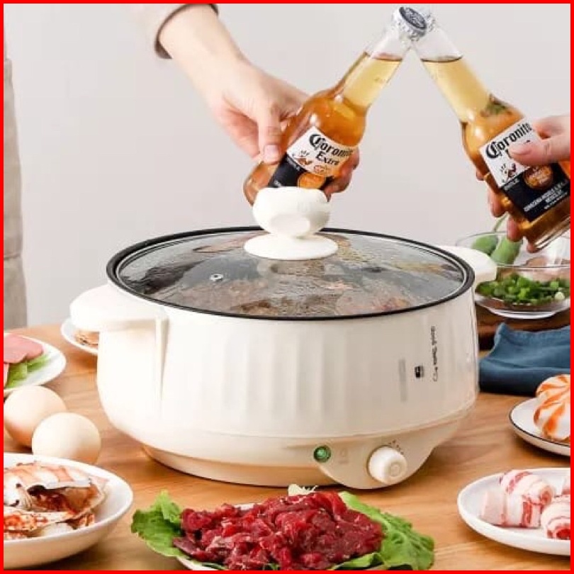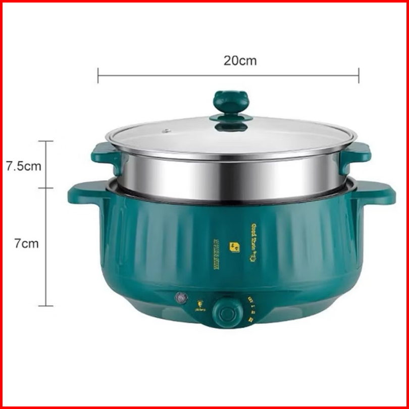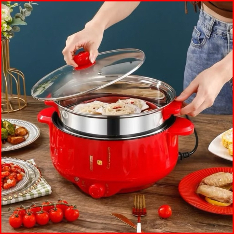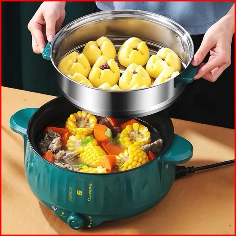 Panci Listrik 2.2l Serbaguna Alat Masak Multifungsi 22cm Anti Lengket Free Kukusan