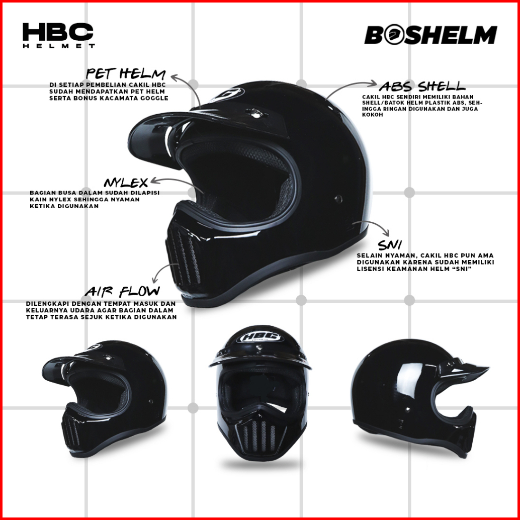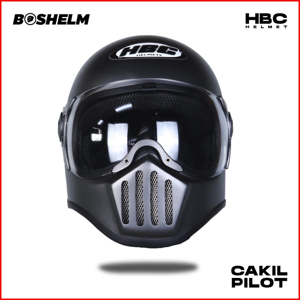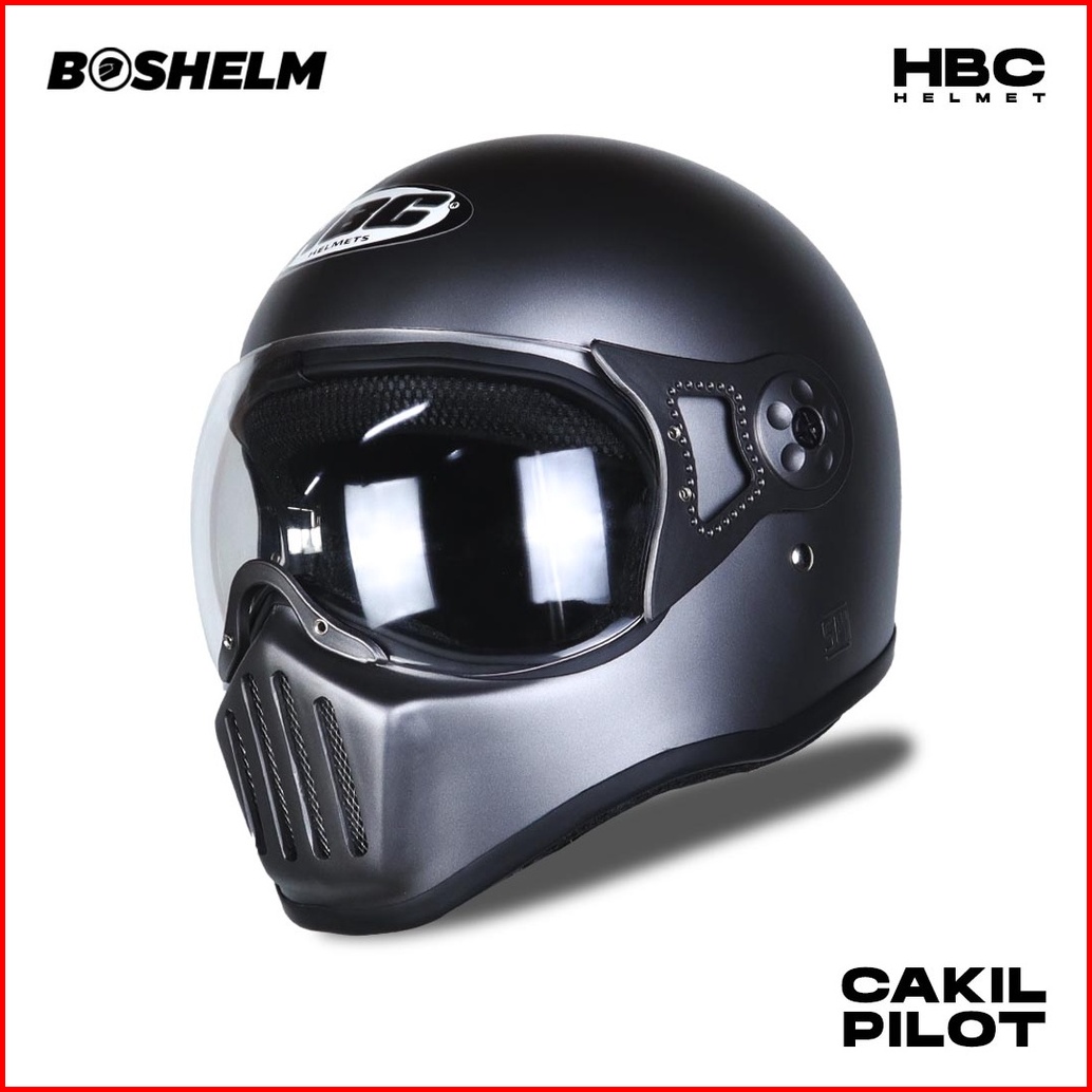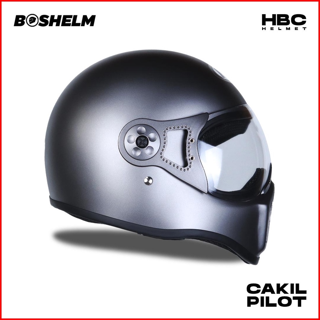 Boshelm Helm Cakil Pilot Hbc Solid Grey Doff Helm Retro Full Face Sni