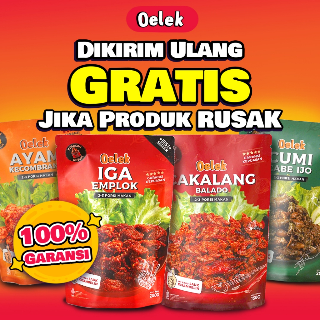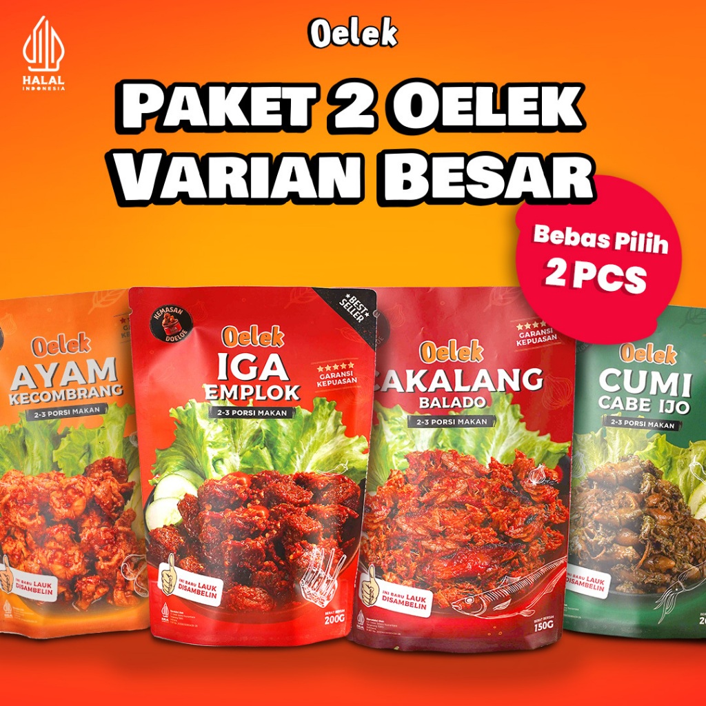 OELEK PAKET 2 VARIAN BESAR / IGA EMPLOK / CAKALANG BALADO / CUMI CABE IJO / AYAM KECOMBRANG / LAUK SIAP SAJI