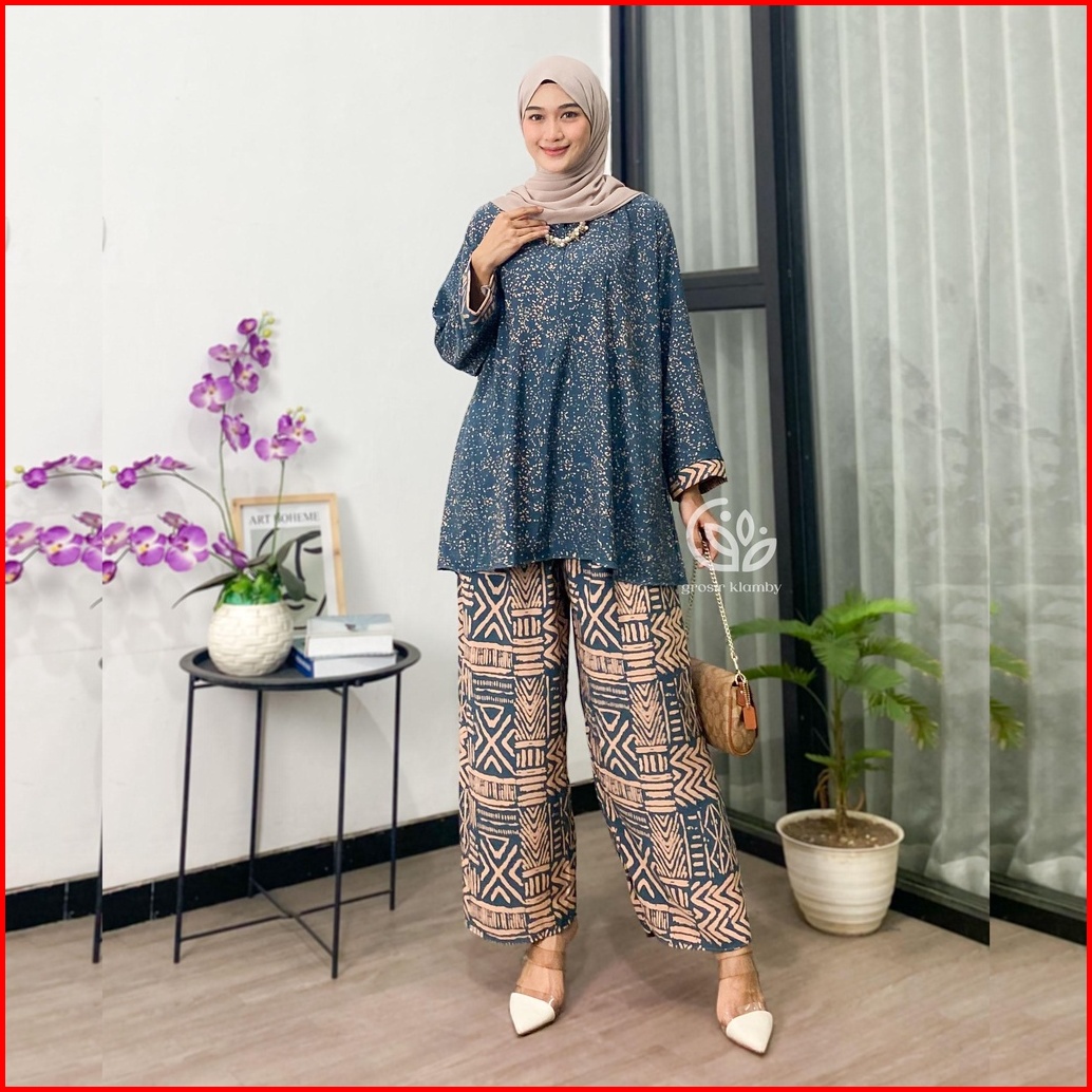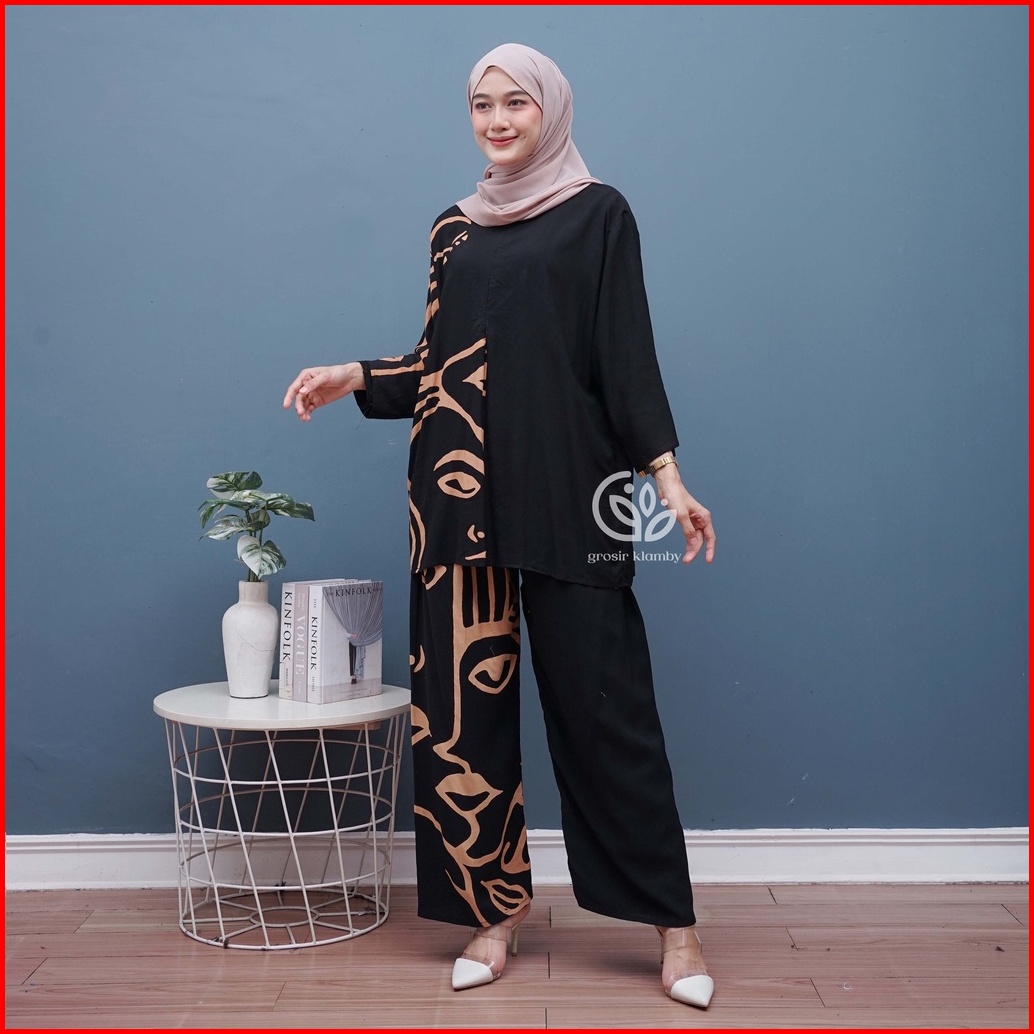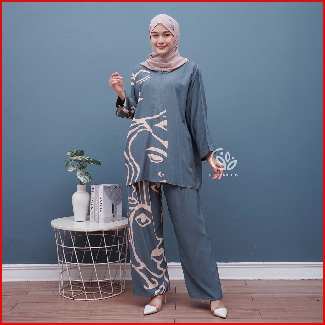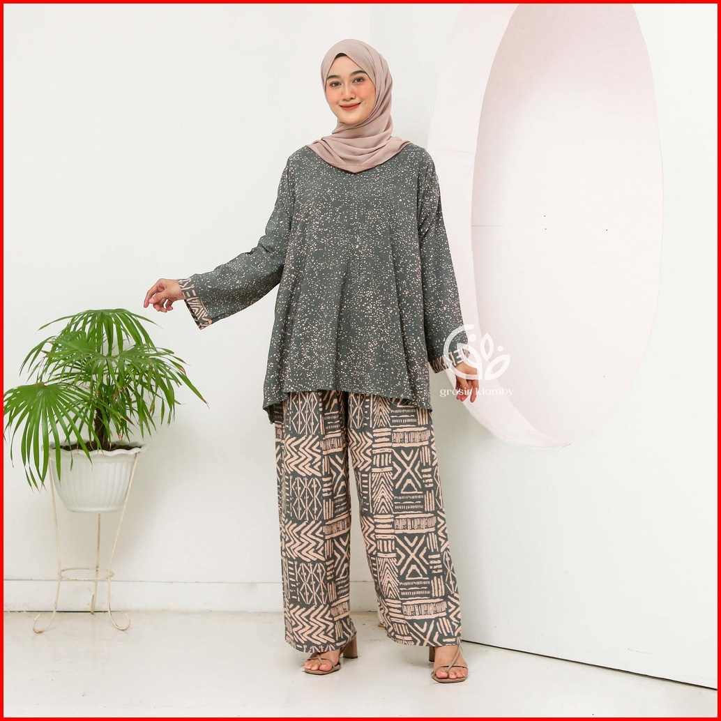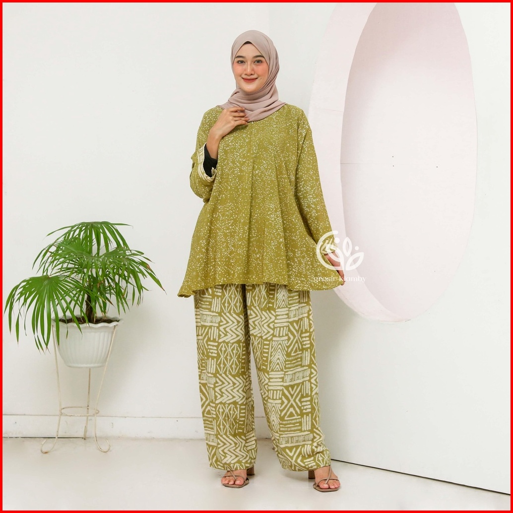 One Set Hawai Rupa Jumbo Rayon Premium Busui Atasan Celana Nyaman Wanita Setelan