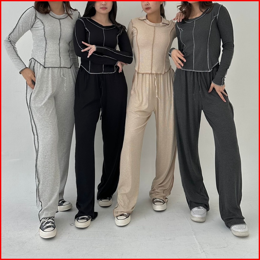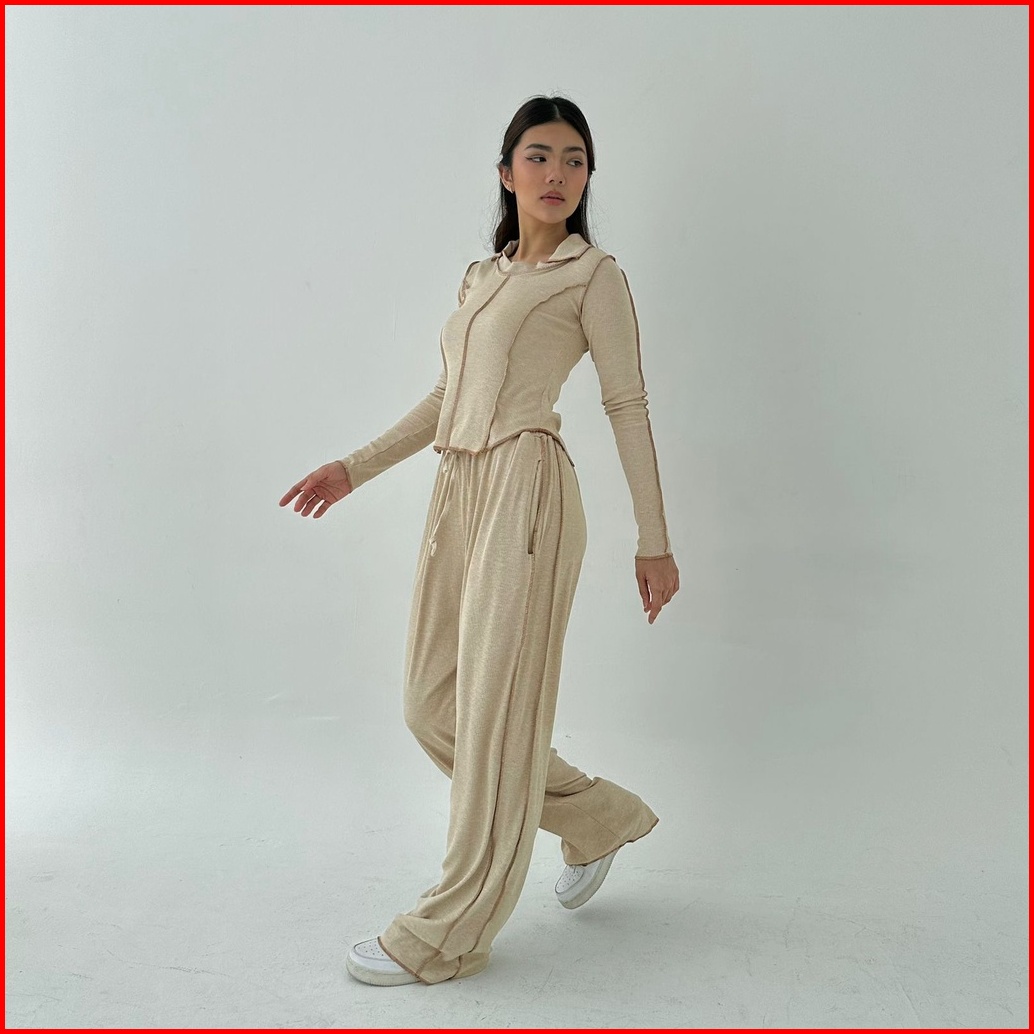 Jupiter Set Setelan Wanita Ribbed Knit Set Lengan Panjang Celana Panjang Highwaist Highwaisted Pants