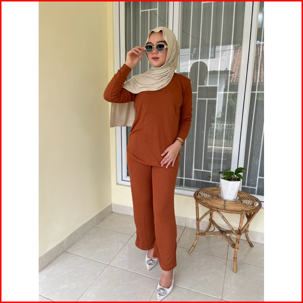 Set Knit Rahfika Premium Rubber Ban Set Knit Set Wanita Setelan Celana Wanita Setelan Wanita One Set Pakaian Wanita