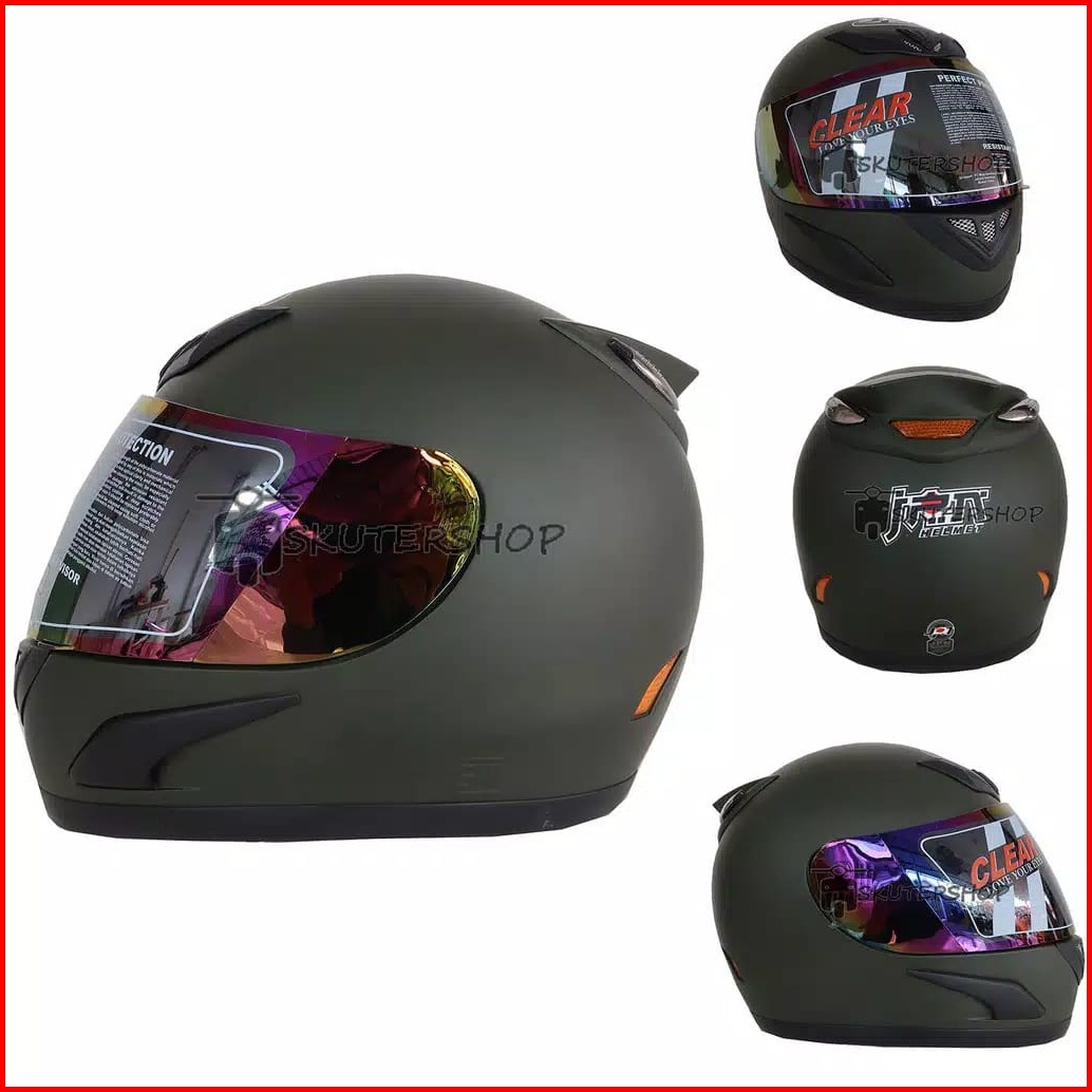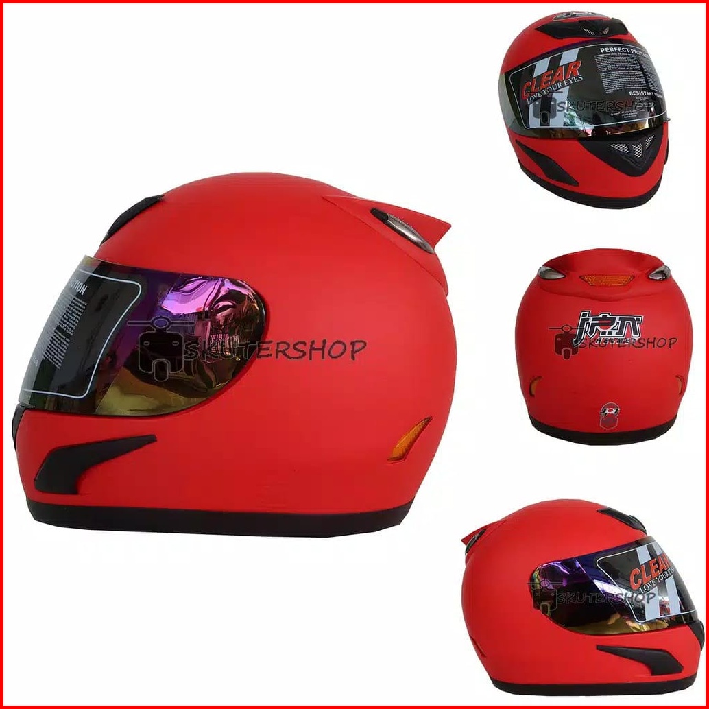 Helm Full Face Brand Jpn Jap Style Racing Sport Motogp Tanduk Hitam Doff Matt Black Visor Rainbow
