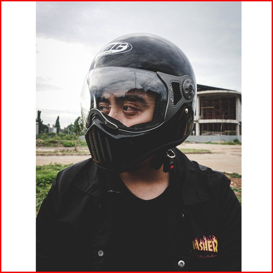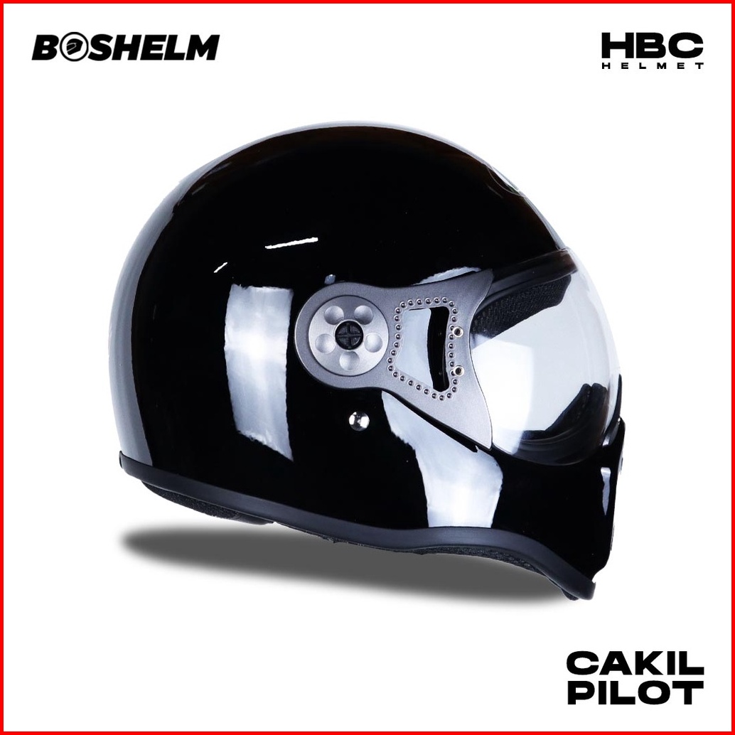 Boshelm Helm Cakil Pilot Hbc Solid Hitam Glossy Helm Retro Full Face Sni