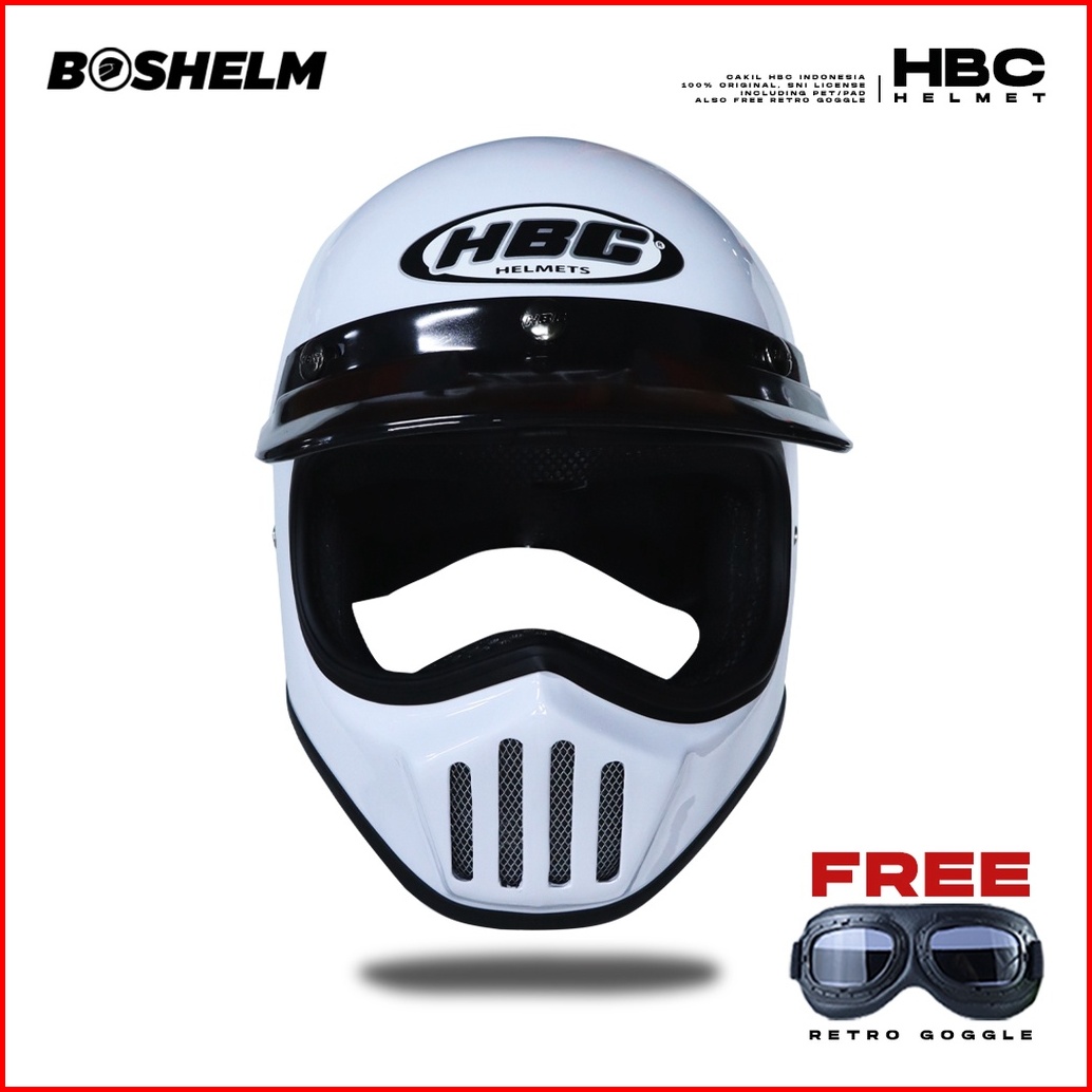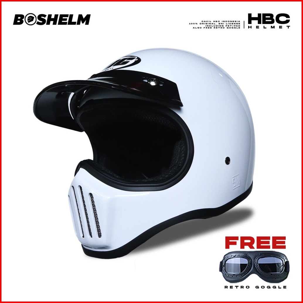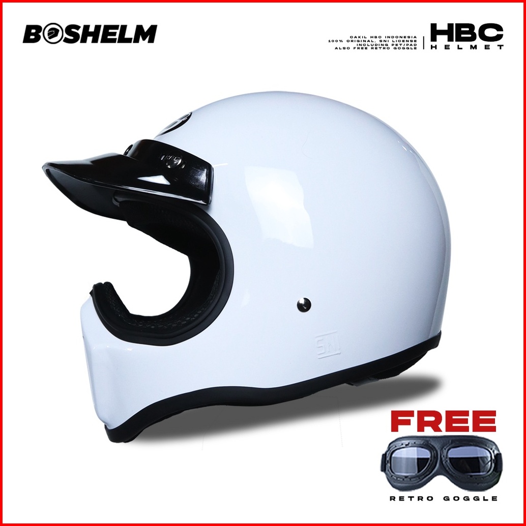 Boshelm Helm Cakil Hbc Putih Glossy Helm Retro Full Face Sni