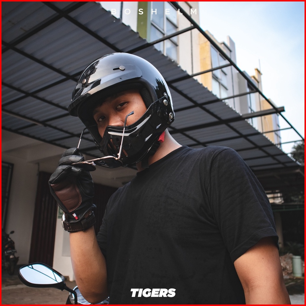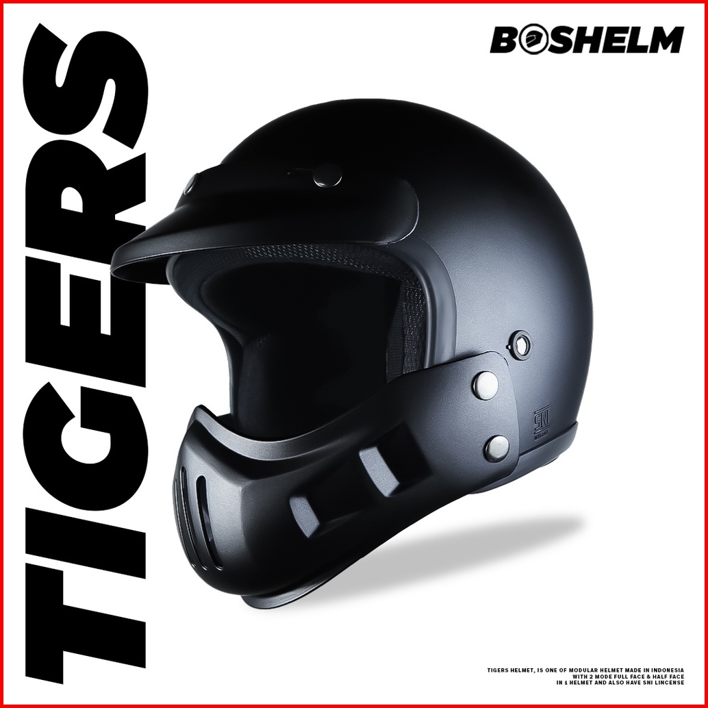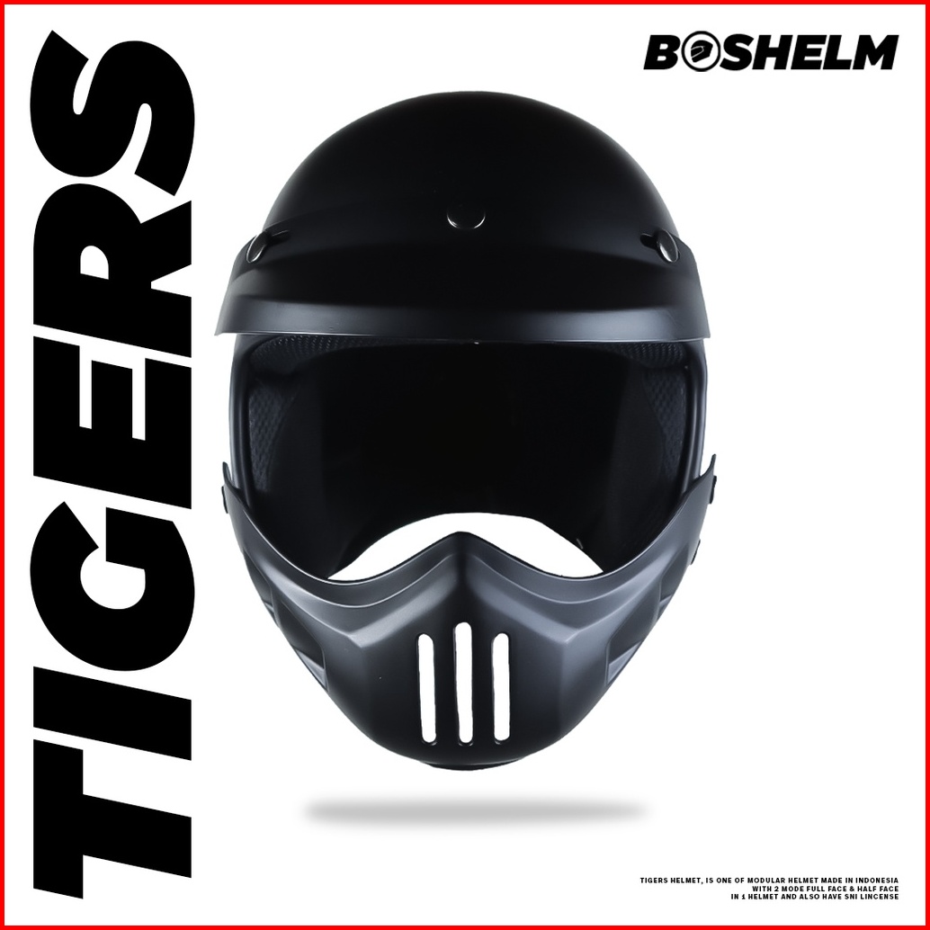 Boshelm Helm Cakil Modular Tigers Hitam Doff Helm Full Face Sni