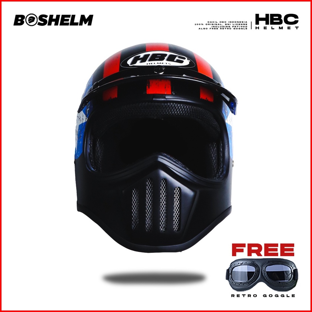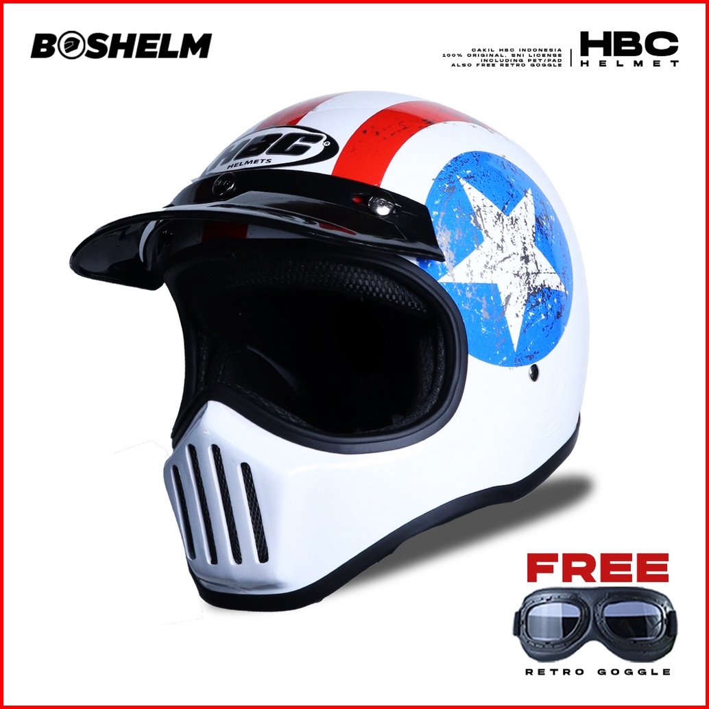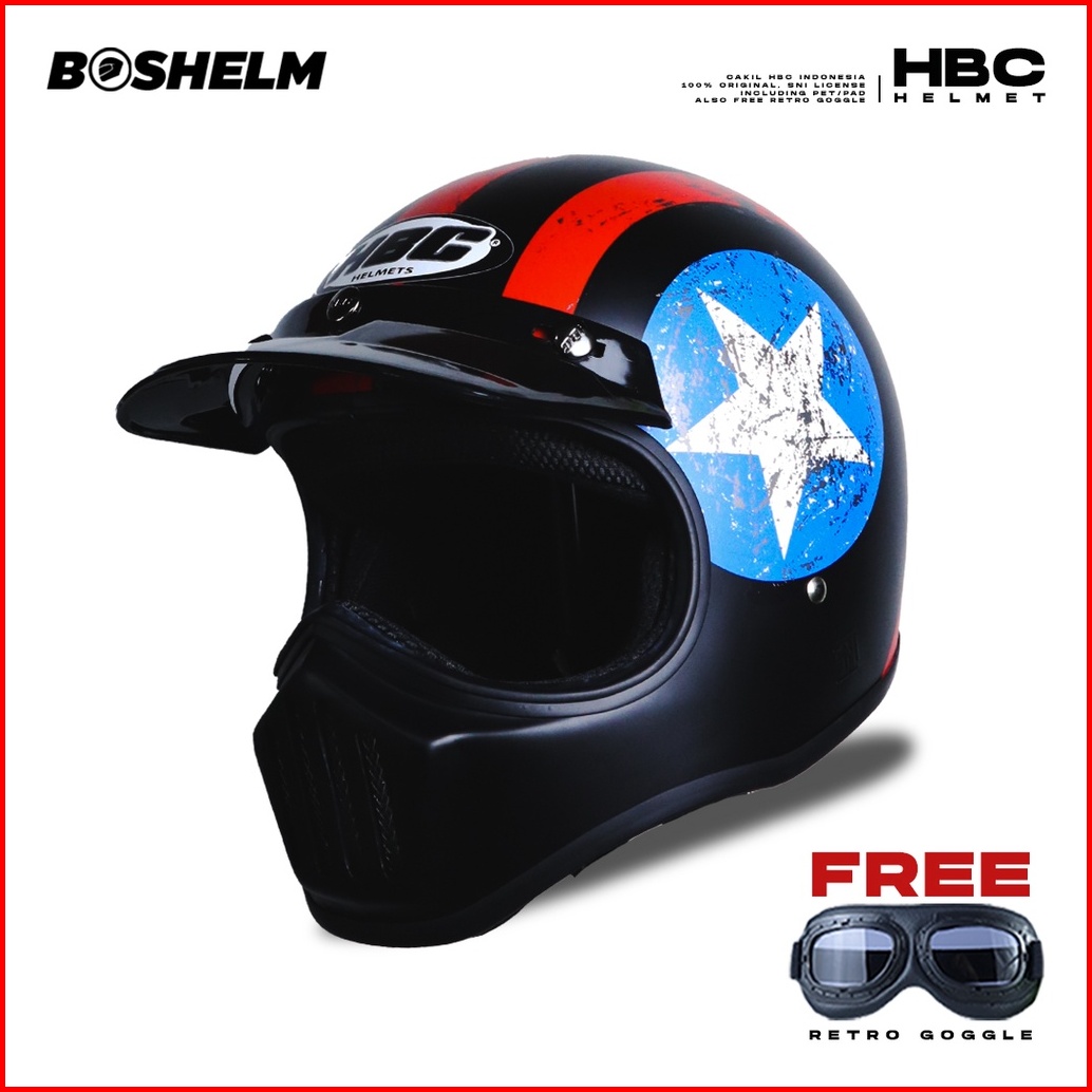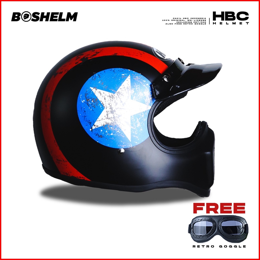 Boshelm Helm Cakil Hbc Captain America Black Helm Retro Full Face Sni