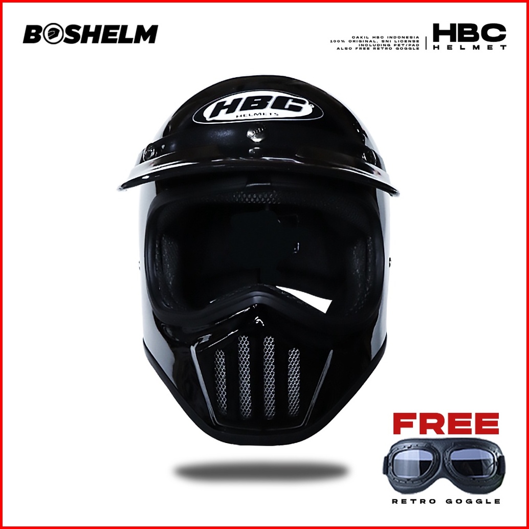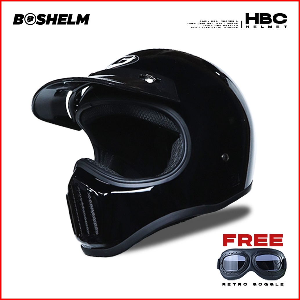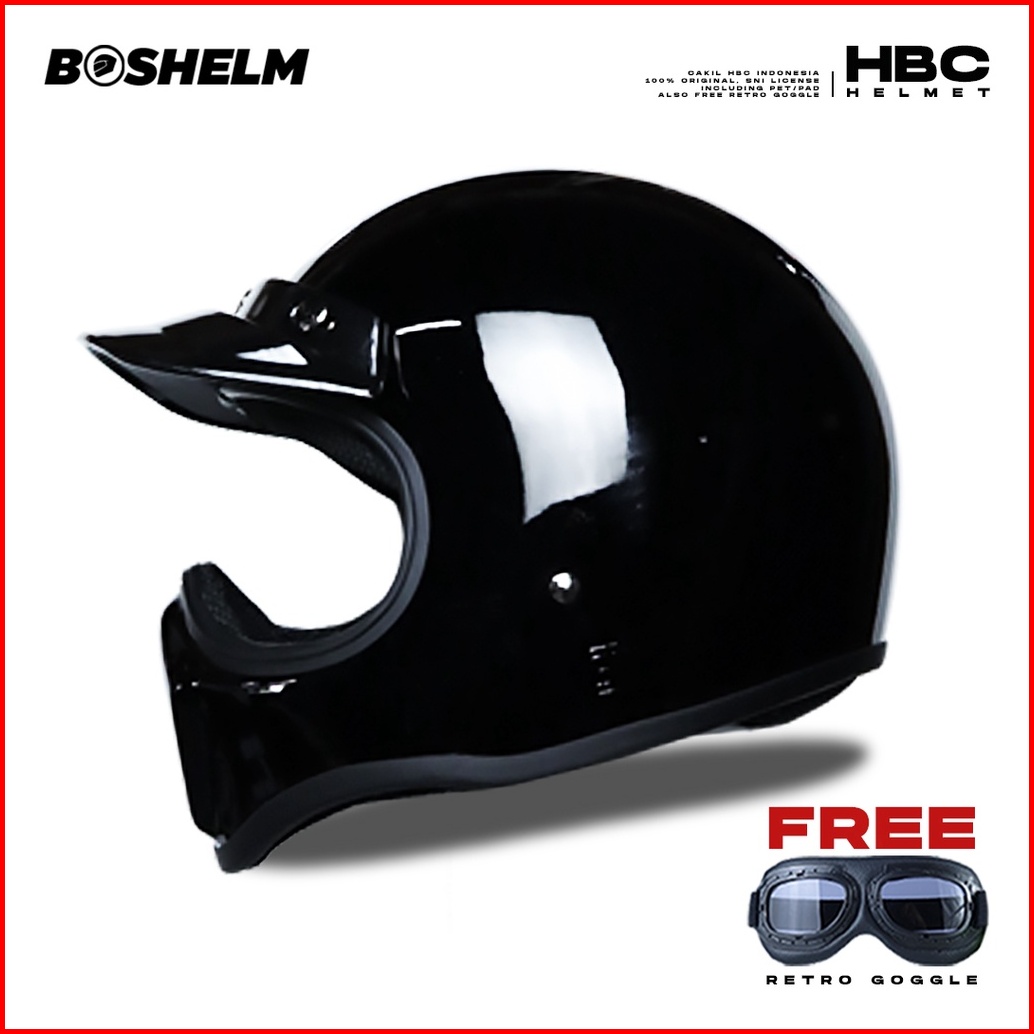 Boshelm Helm Cakil Hbc Hitam Glossy Helm Retro Full Face Sni