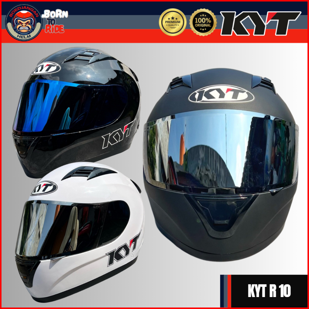 Kyt Helm R10 Solid Black Doff R10 Solid Black Glossy R10 Solid White - Iridium Visor - Full Face